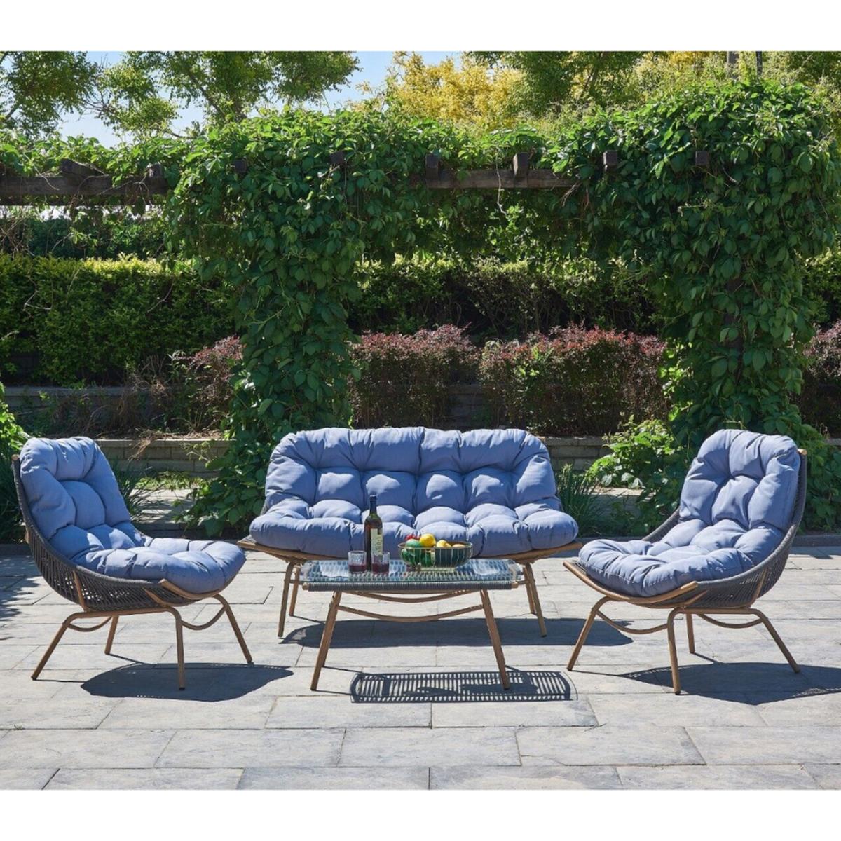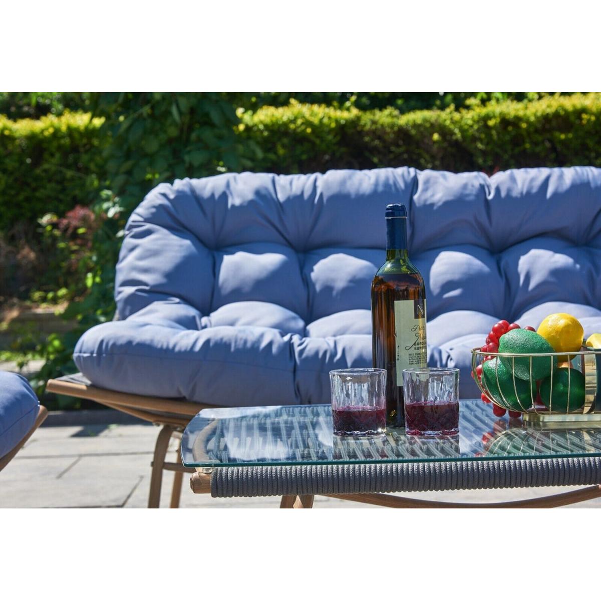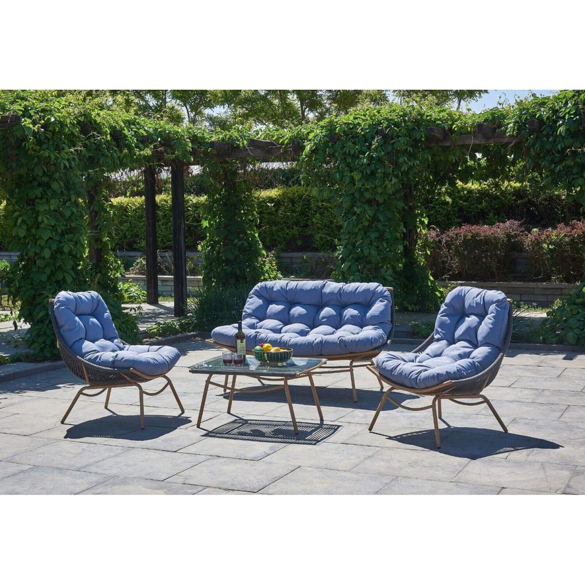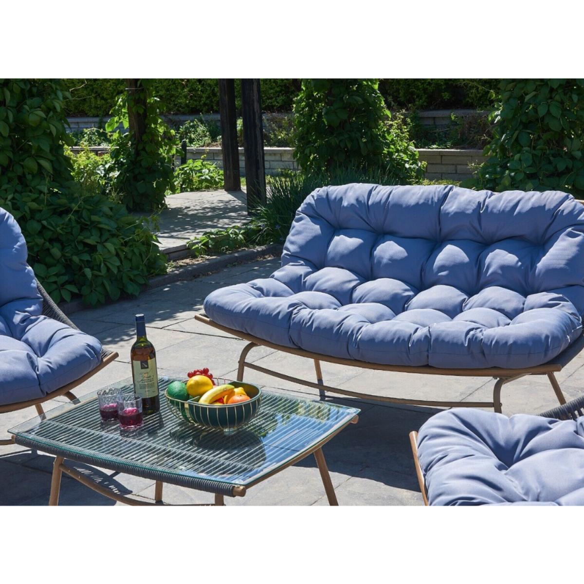 Adorn your garden with this perfect chic yet bohemian addition to your garden space! The merge between the rattan effect, chunky cushions, and simplistic legs. Make your garden an inviting place with the Cyprus 4-seater rattan set with contrasting cushions, and legs. Made from rattan effect PE weaves supported by a steel frame ensuring durability. Constructed from hard-wearing and low-maintenance PE rattan material in a basket weave woven belt style. Our high-quality weatherproof synthetic wicker fiber has low-maintenance formulated with its high UV tolerance and moisture resistance. Generously deep-filled foam waterproof cushions provide you with premium comfort levels. With removable washable cushion covers. Plush, soft, and ready to sink right in!