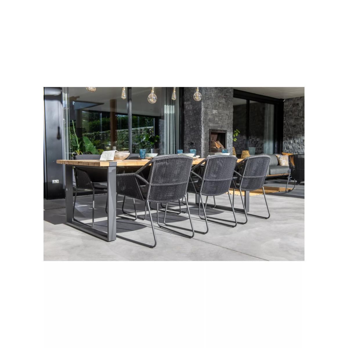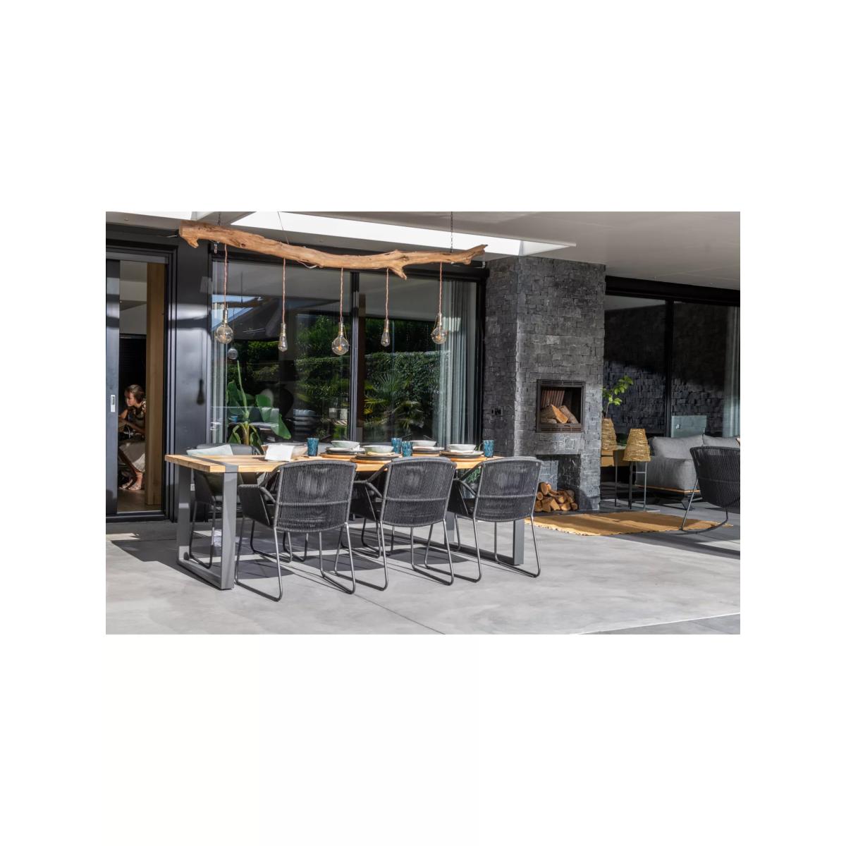 A contemporary Accor dining set from 4 Seasons Outdoor, comfortably seating up to six people in the garden or conservatory. The weather-resistant table has a beautiful teak wood top on a sturdy aluminium frame. The rope-like design on the six chairs is handwoven and made from high-quality synthetic polypropylene that's water-resistant and remains taut for comfortable support. This type of weave is durable, contains no hazardous materials and can be fully recycled at the end of its life cycle. The foam-filled seat and backrest cushions have removable covers that are machine washable, making the set easy to clean and maintain. Key benefits: 6 dining armchairs, 1 teak wood dining table Robust stainless steel seating frames Rope-like weave on the chairs Seat and backrest cushions with machine washable covers Weather-resistant set Matches furniture in the Accor range Want to see it first? You may want to see and get a feel for the product in one of our shops before ordering. We'll be able to tell you where the range you'd like to view is on display.