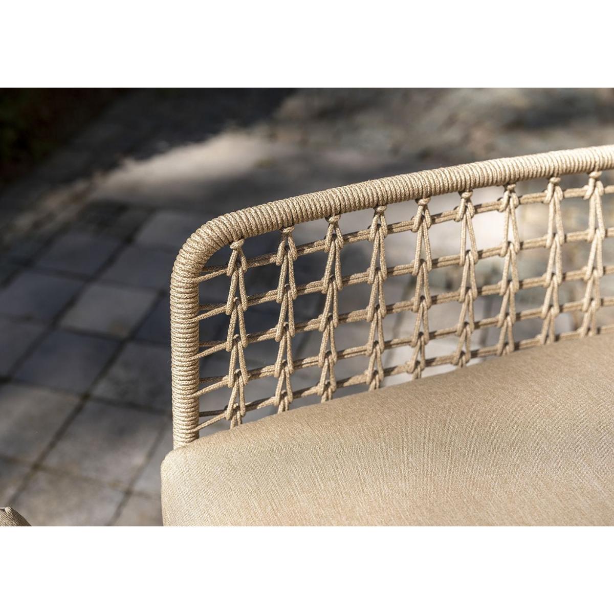 Relax in effortless style with the Albano collection. The refined rope pattern and slim design create a light, airy feel, while plush, weather-resistant cushions offer supreme comfort. Whether used alone or paired with the complete set, these pieces bring timeless elegance to any outdoor space.