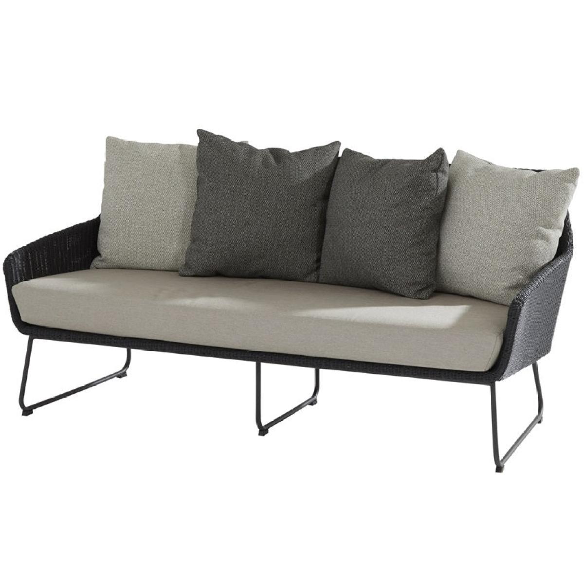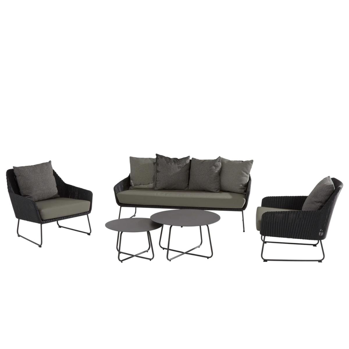 Olivia's Outdoor Aria 5-Seater Lounge Set in Grey Bring style and comfort to your outdoor living space with the Olivia's Outdoor Aria 5-Seater Lounge Set in Grey. This high-quality outdoor furniture set is designed to provide you with the ultimate in relaxation and luxury. Features The set includes a spacious three-seater sofa, two armchairs, and a matching coffee table. The frames are made from durable steel, with a powder-coated finish to protect against rust and corrosion. The cushions are made from high-density foam and covered in a soft, weather-resistant fabric for maximum comfort and longevity. The coffee table features a tempered glass top, providing a sleek and stylish surface for your drinks and snacks. The set's neutral grey color scheme is versatile and timeless, making it the perfect addition to any outdoor space. Benefits The Olivia's Outdoor Aria 5-Seater Lounge Set in Grey is perfect for relaxing and entertaining in style. Whether you're hosting a summer barbecue or enjoying a quiet evening under the stars, this set has everything you need to create a comfortable and inviting outdoor space. The set is easy to maintain, with cushions that are removable and machine-washable for hassle-free cleaning. The steel frames are sturdy and durable, designed to withstand the elements and provide long-lasting performance. Conclusion If you're looking for a stylish and comfortable outdoor furniture set, the Olivia's Outdoor Aria 5-Seater Lounge Set in Grey is an excellent choice. With its high-quality materials, elegant design, and versatile color scheme, this set is sure to provide you with years of enjoyment and relaxation in your outdoor living space. Dimensions:Chairs - W: 77 x D: 80 x H: 76 cm Bench - W: 167 x D: 80 x H: 76 cm Large Table - W: 73 x D: 73 x H: 40 cm Small Table - W: 58.5 x D: 58.5 x H: 35 cm Materials: Polyloom, Stainless Steel. Colour: Cushions - Spanish Grey Chair Frame & Tables - Anthracite Assembly Required: No. Cushions included, Set of 2 Chairs, 1 x Bench
