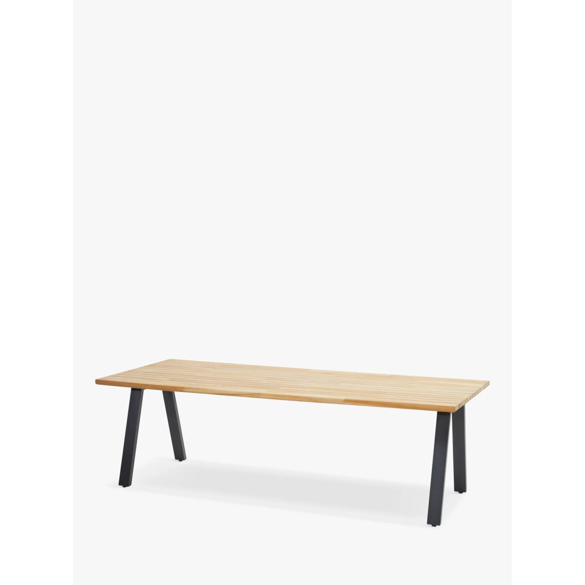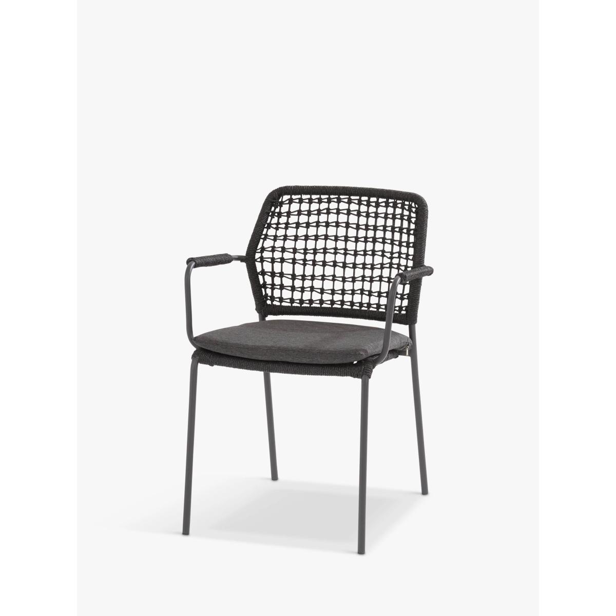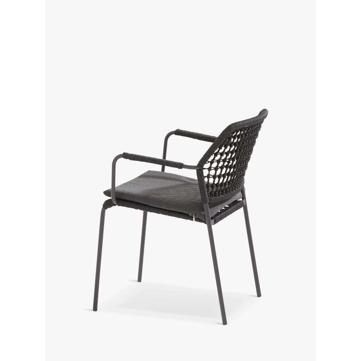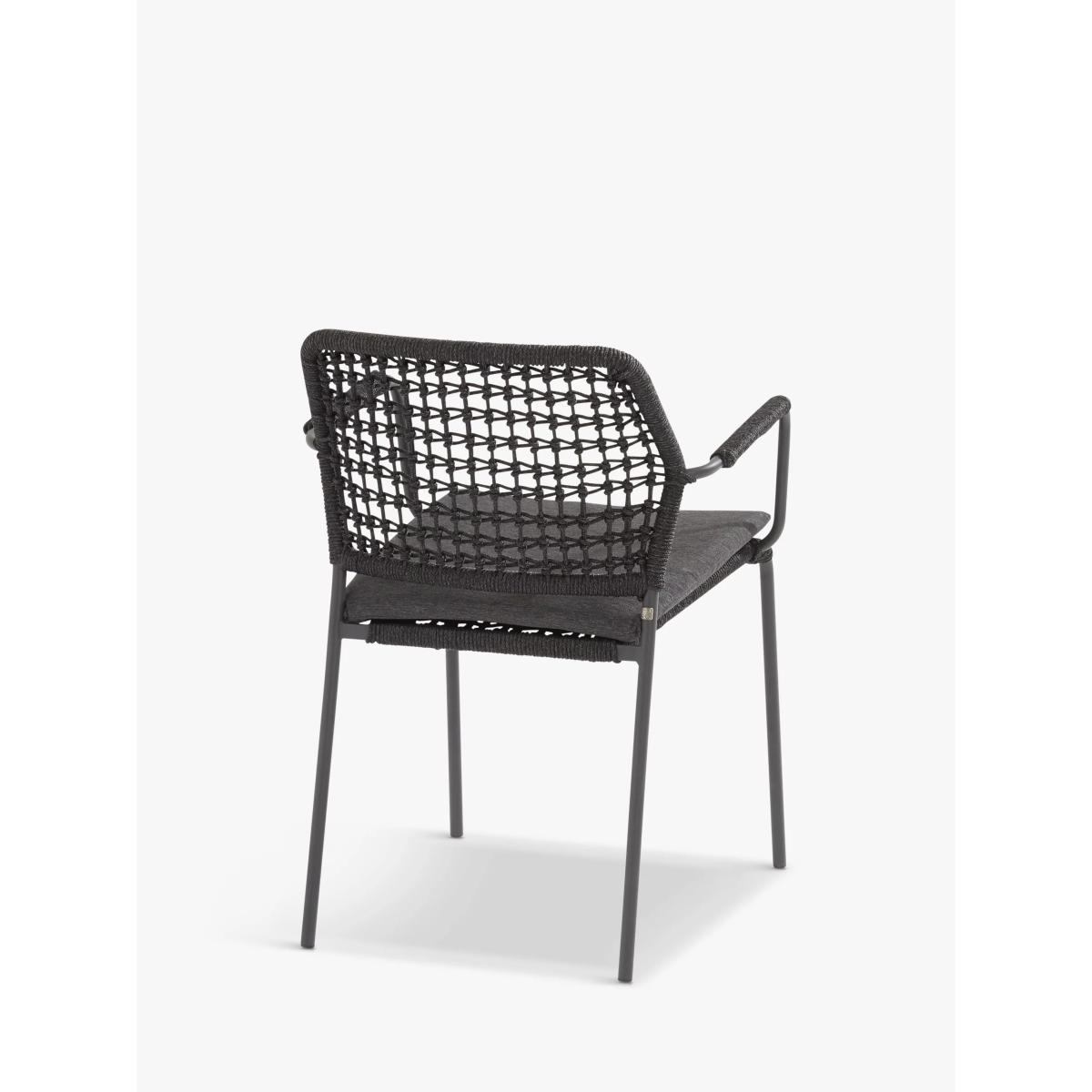Contemporary and weather-resistant six-seater garden dining set from 4 Seasons Outdoor. The set includes six Barista garden dining armchairs and a rectangular Ambassador dining table. The table has an FSC-certified teak wood slatted top and angled stainless steel legs in a powder-coated anthracite finish. The rope-like design on the armchairs is handwoven with a high-quality, durable weave. All the rope materials have a polypropylene base or weave assuring the rope remains taut. The rope contains no hazardous materials and can be fully recycled at the end of its lifetime. The foam-filled seat cushions give you comfortable support and the covers are removable and machine-washable for easy cleaning. The sturdy chair legs are made of powder-coated stainless steel. Key features: Six Barista garden dining chairs Rectangular 240cm Ambassador dining table with an FSC-certified teak wood top Stainless steel table legs in a powder-coated anthracite finish Sturdy powder-coated stainless steel chair frames with rope-like durable weaves Seat cushions with machine washable covers Weather-resistant for outdoor use Garden furniture care: To keep your outdoor furniture in the best condition, store it in a cool, dry, well-ventilated spot indoors over the winter. If it’s staying outside, use an outdoor furniture cover whenever the weather is wet or unseasonal. Make sure furniture is clean and dry before storing it away and keep cushions in a clean and dry place when not in use. By choosing this product you are supporting responsible management of the world's forests. The Forest Stewardship Council® (FSC®) is a global, not-for-profit organisation that helps take care of forests and the people and wildlife that call them home. To learn more, visit fsc.org.