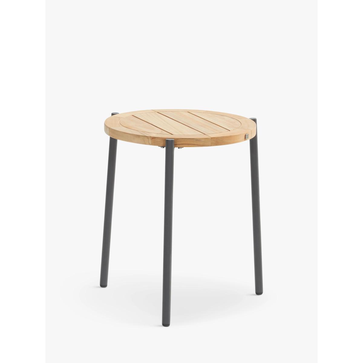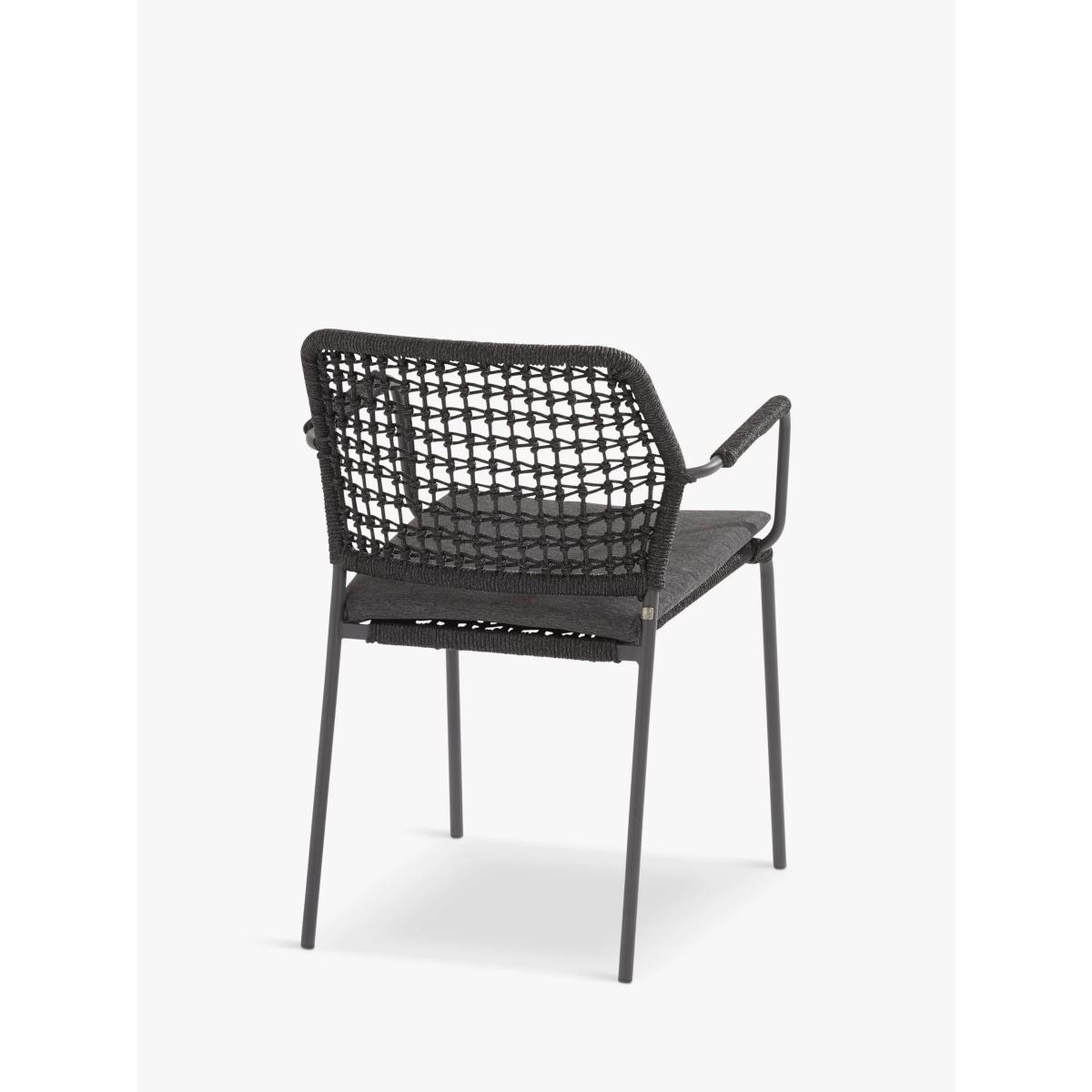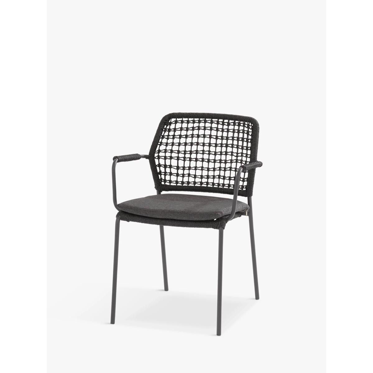 Contemporary and weather-resistant two-seater garden bistro set from 4 Seasons Outdoor. The set includes two Barista garden dining armchairs and a round Yoga bistro table with sturdy yet lightweight aluminium legs in a protective powder-coated finish and a naturally weather-resistant teak wood top. The rope-like design on the armchairs is handwoven with a high-quality, durable weave. All the rope materials have a polypropylene base or weave assuring the rope remains taut. The rope contains no hazardous materials and can be fully recycled at the end of its lifetime. The foam-filled seat cushions give you comfortable support and the covers are removable and machine-washable for easy cleaning. The sturdy chair legs are made of powder-coated stainless steel. Key features: Two Barista garden dining chairs Round 45cm Yoga bistro table with an FSC-certified teak wood top Aluminium table legs in a powder-coated anthracite finish Sturdy powder-coated stainless steel chair frames with rope-like durable weaves Seat cushions with machine washable covers Weather-resistant for outdoor use Garden furniture care: To keep your outdoor furniture in the best condition, store it in a cool, dry, well-ventilated spot indoors over the winter. If it’s staying outside, use an outdoor furniture cover whenever the weather is wet or unseasonal. Make sure furniture is clean and dry before storing it away and keep cushions in a clean and dry place when not in use. By choosing this product you are supporting responsible management of the world's forests. The Forest Stewardship Council® (FSC®) is a global, not-for-profit organisation that helps take care of forests and the people and wildlife that call them home. To learn more, visit fsc.org.