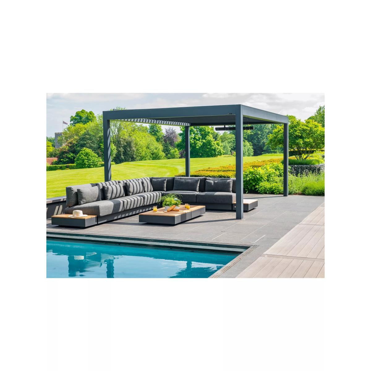 An ultra-modern design with plenty of sprawling space, the Ibiza range from 4 Seasons Outdoor features weather-resistant powder-coated aluminium frames and teak wood table tops. This modular garden lounging set includes a 2-seater sofa, a 3-seater sofa and a corner unit. The set comes with two rectangular side tables and two square coffee tables, all with teak wood tops. The sumptuous seat and backrest cushions have machine-washable covers and can remain outside except in winter months. Key features: A 2-seater sofa, 3-seater sofa and a corner unit Two square coffee tables with teak wood top Two rectangular side tables with teak wood top Robust aluminium frames Comfortable seat and back cushions