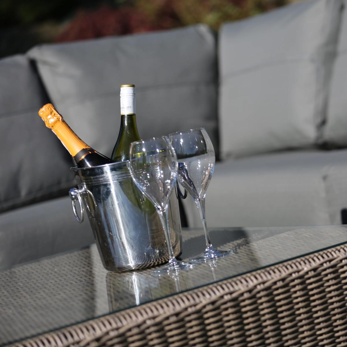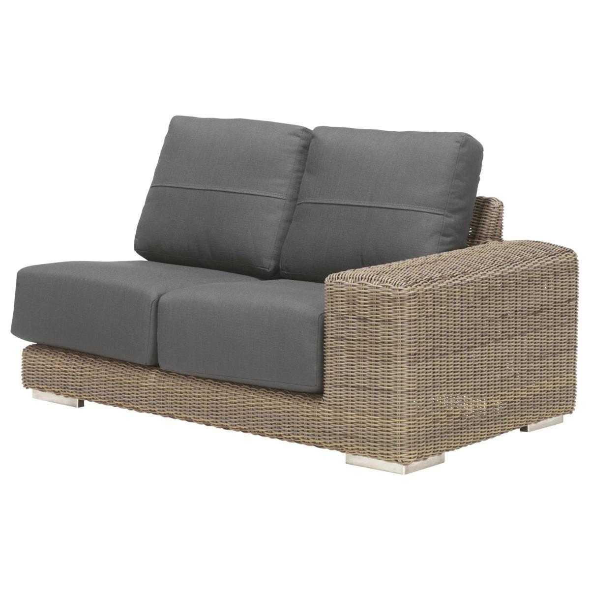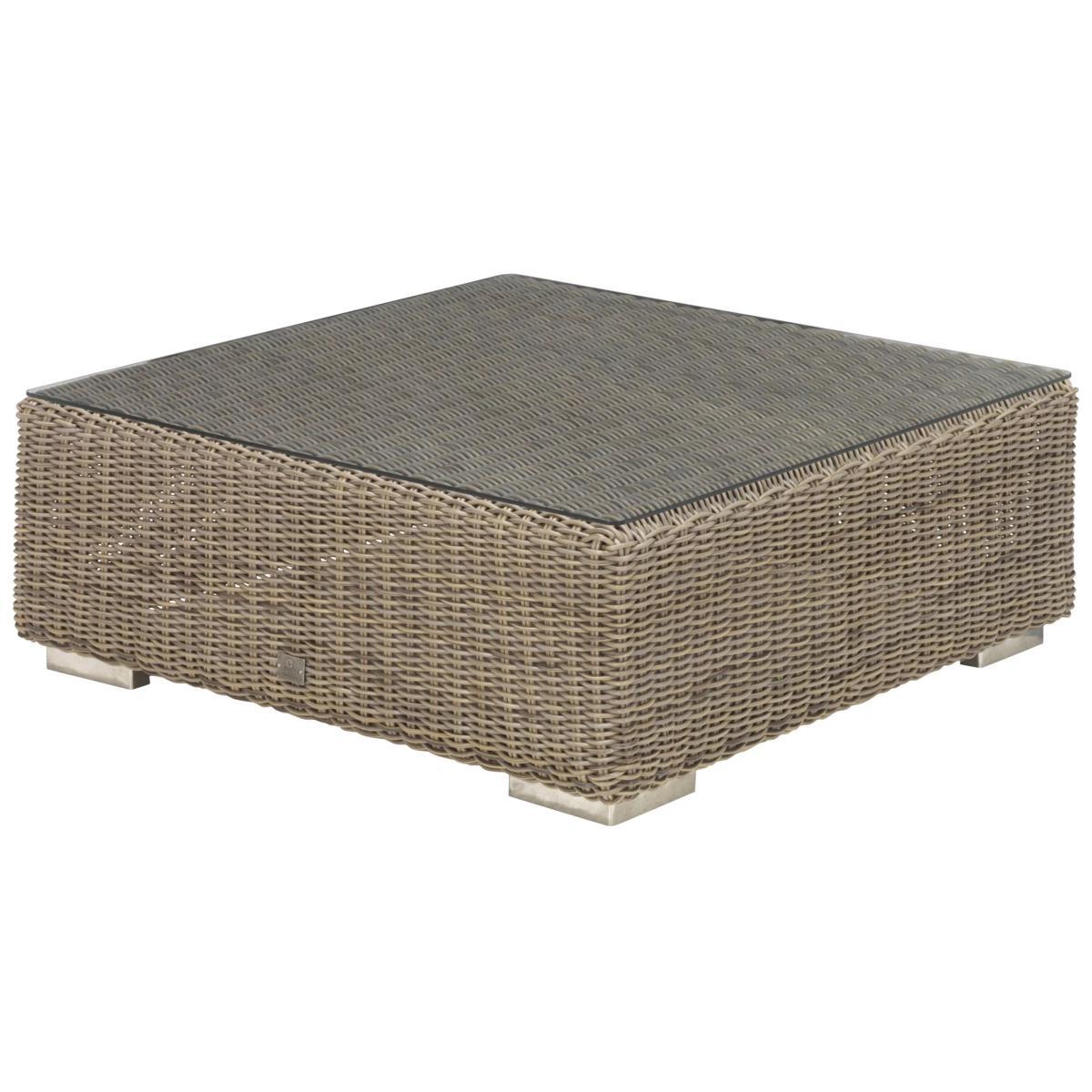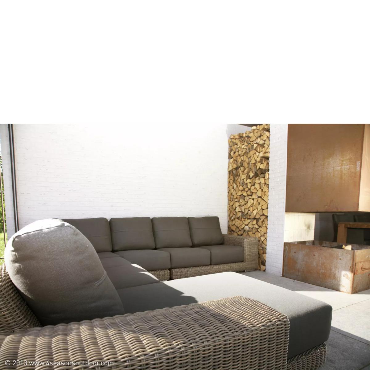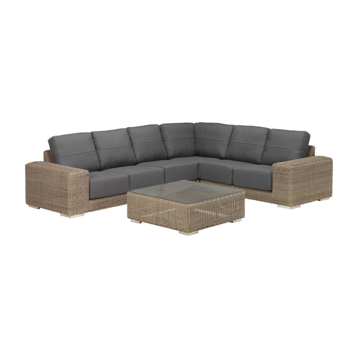 A versatile low lounging set from the Kingston range of garden furniture by 4 Seasons Outdoor. The interconnecting set includes a square coffee table, two 2-seater sofas, one modular chair and a corner unit, plus seat and backrest cushions. The seating tapers off slightly for optimal comfort. A modern-styled range for ultimate comfort, Kingston is very versatile as you can mix components to suit your space and relaxation needs. Made from synthetic wicker with a 5mm weave, the furniture is durable and resistant to UV rays, salt water, lotions, chlorine and alcohol, making it easy to maintain. The sumptuous cushions have a special foam filling to allow water to quickly flow through, while the material ensures the cushions retain their shape. The cushions are also UV-resistant, fungus-free and recyclable. Key features: Coffee table, 2 x 2-seater sofas, modular chair, corner unit Aluminium frames UV-resistant, stain-resistant and water-resistant 5mm weave Table has glass protector with safety glass Sumptuous seat and back cushions Low maintenance Seat height: 45cm Matches furniture in the Kingston range by 4 Seasons Outdoors Want to see it first? You may want to see and get a feel for the product in one of our shops before ordering. We'll be able to tell you where the range you'd like to view is on display. Choose the perfect outdoor furniture We have a vast selection of furniture for you to choose from which will suit the home or garden. The majority of our furniture ranges have been hand woven using a synthetic wicker. The thinner the weave, the longer it takes for the skilled workers to complete. All weave types are durable so they'll last throughout the seasons All woven outdoor furniture is UV protected so it will not fade in direct sunlight All woven outdoor furniture is easy to maintain, simply wipe clean using warm water Flat A weave of various widths which offers incredible value for money Half round More detailed with a 3D effect, the half round is a round weave in half which displays a wicker appearance on the top and hollowed underside Double half round A double strand of half round, this is a wider width of weave which achieves an expensive appearance Round weave A very tight weave which is available in various widths, from 2mm to 5mm Rope A selection of our ranges have been made using rope. The yarn is made up of 10,000 (approx) woven strands with a double core for extreme strength, does not attract mould even if wet for a long time and is UV resistant.