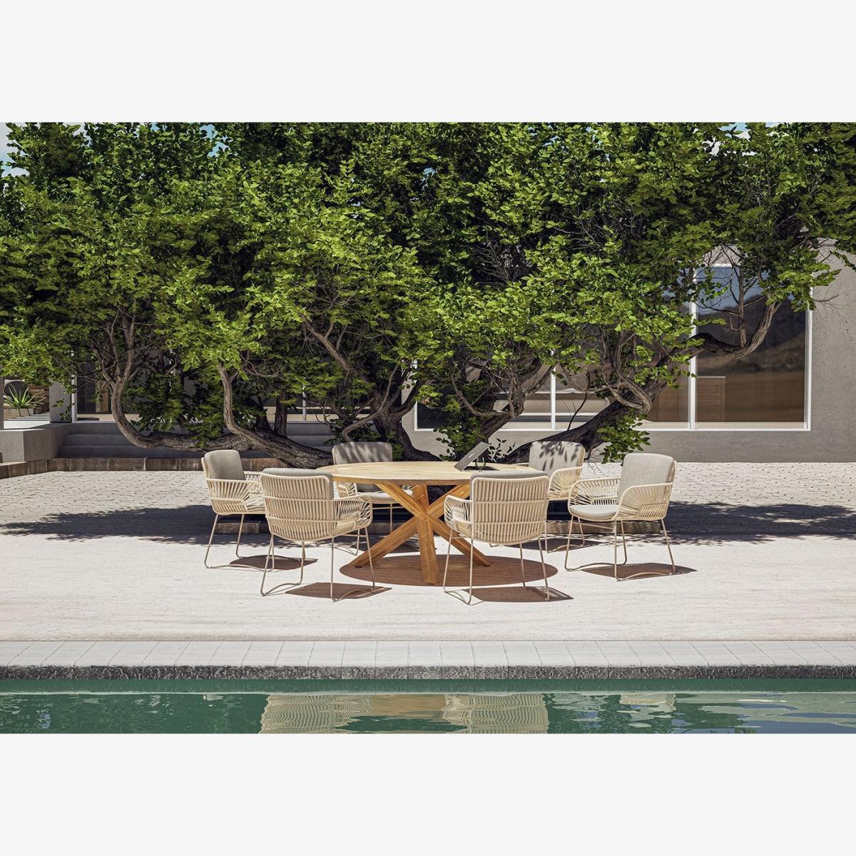 Combining natural teak with a bold cross-frame base, the Prado dining table is a stunning statement piece for outdoor dining. Available in a round design, its sturdy craftsmanship and timeless style make it the perfect setting for sharing meals and creating memories in the garden.