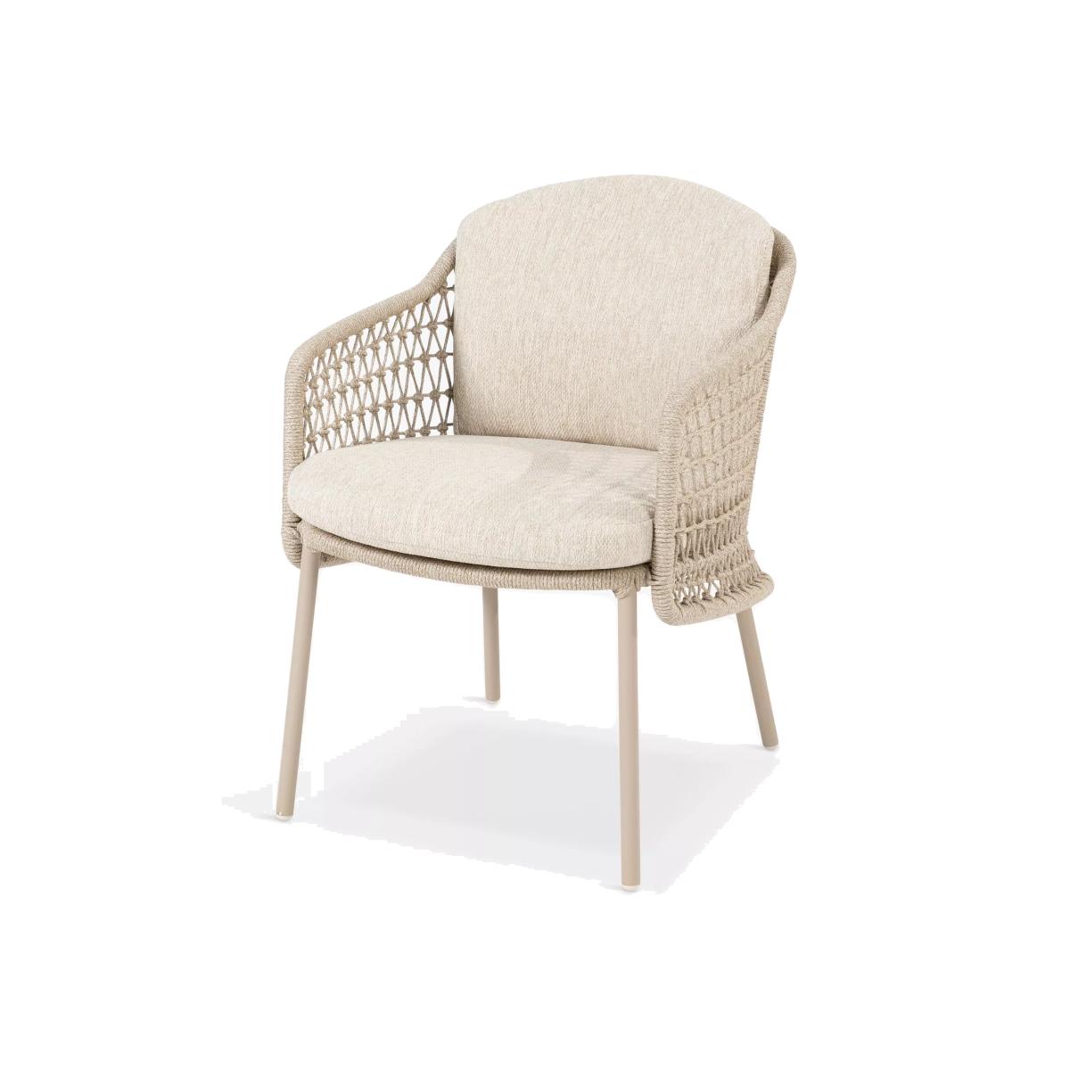 Contemporary and weather-resistant pair of Puccini dining chairs from 4 Seasons Outdoor. The rope-like design on the armchairs is handwoven with a high-quality, durable weave. All the rope materials have a polypropylene base or weave, ensuring the rope remains taut. The rope contains no hazardous materials and can be fully recycled at the end of its lifetime. The foam-filled seat and backrest cushions give you comfortable support and the covers are removable and machine-washable for easy cleaning. The sturdy chair legs are made of powder-coated stainless steel. Key features: Pair of Puccini dining armchairs Rope-like durable weave on the chairs Sturdy powder-coated stainless steel legs Seat and backrest cushions with machine washable covers Weather-resistant Fully assembled for immediate use Garden furniture care: To keep your outdoor furniture in the best condition, store it in a cool, dry, well-ventilated spot indoors over the winter. If it’s staying outside, use an outdoor furniture cover whenever the weather is wet or unseasonal. Make sure furniture is clean and dry before storing it away, and keep cushions in a clean and dry place when not in use.