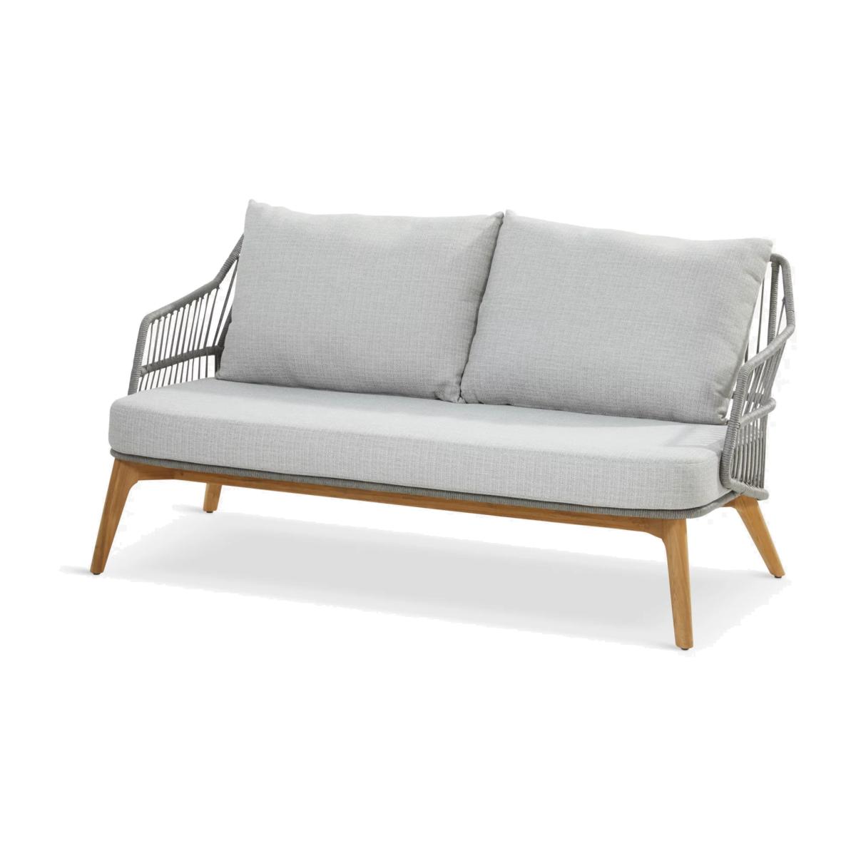 Contemporary and weather-resistant Sempre garden sofa from 4 Seasons Outdoor, with plenty of room for two people. The airy and organic rope-like design on the sofa is handwoven with a high-quality, durable weave. All the rope materials have a polypropylene base or weave assuring the rope remains taut. The rope contains no hazardous materials and can be fully recycled at the end of its lifetime. The foam-filled seat and two backrest cushions give you comfortable support and the covers are removable and machine-washable for easy cleaning. The legs are made of naturally weather-resistant FSC-certified teak wood. Key features: Sempre two-seater garden sofa FSC-certified teak wood legs Rope-like durable weave on the sofa Seat and backrest cushions with machine washable covers Weather-resistant Garden furniture care: To keep your outdoor furniture in the best condition, store it in a cool, dry, well-ventilated spot indoors over the winter. If it’s staying outside, use an outdoor furniture cover whenever the weather is wet or unseasonal. Make sure furniture is clean and dry before storing it away and keep cushions in a clean and dry place when not in use. By choosing this product you are supporting responsible management of the world's forests. The Forest Stewardship Council® (FSC®) is a global, not-for-profit organisation that helps take care of forests and the people and wildlife that call them home. To learn more, visit fsc.org.