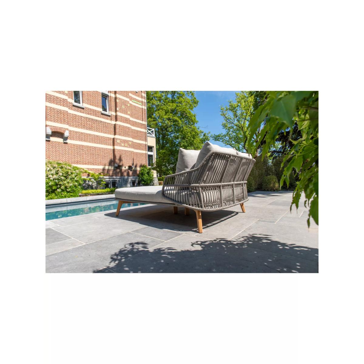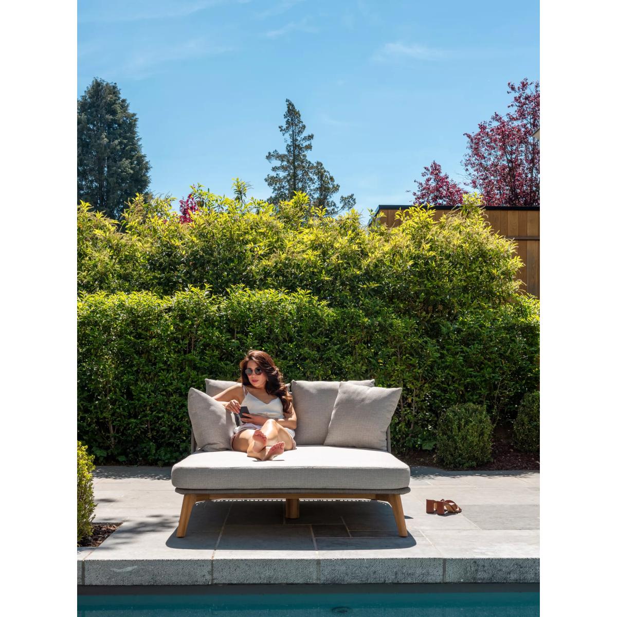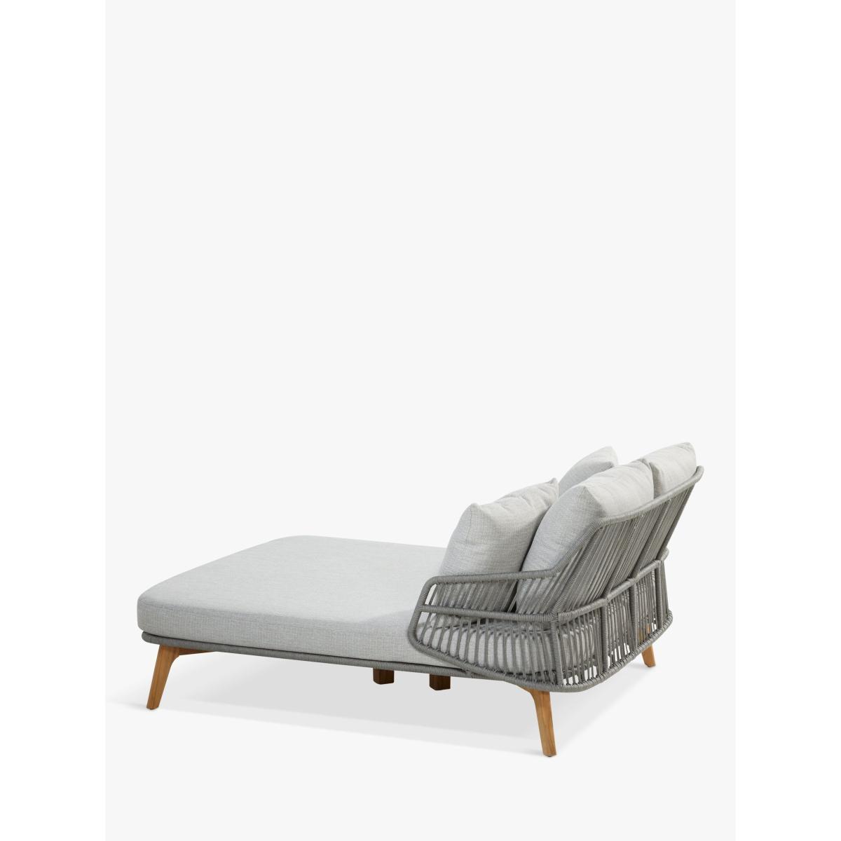 An airy and organic, contemporary Sempre day bed, a weather-resistant design from 4 Seasons Outdoor, for the garden or conservatory. The rope-like design on the day bed is handwoven with a high-quality, durable weave. All the rope materials have a polypropylene base or weave assuring the rope remains taut. The rope contains no hazardous materials and can be fully recycled at the end of its lifetime. The plump foam-filled seating and four scatter cushions give you comfortable support and the covers are removable and machine washable for easy cleaning. The sturdy legs are made of weather-resistant FSC-certified teak wood, sourced from sustainably managed forests. Key benefits: Garden double day bed Rope-like synthetic weave with FSC-certified teak wood legs Plump seating and four scatter cushions with machine washable covers Weather-resistant By choosing this product you are supporting responsible management of the world's forests. The Forest Stewardship Council® (FSC®) is a global, not-for-profit organisation that helps take care of forests and the people and wildlife that call them home. To learn more, visit fsc.org. Want to see it first? You may want to see and get a feel for the product in one of our shops before ordering. We'll be able to tell you where the range you'd like to view is on display.