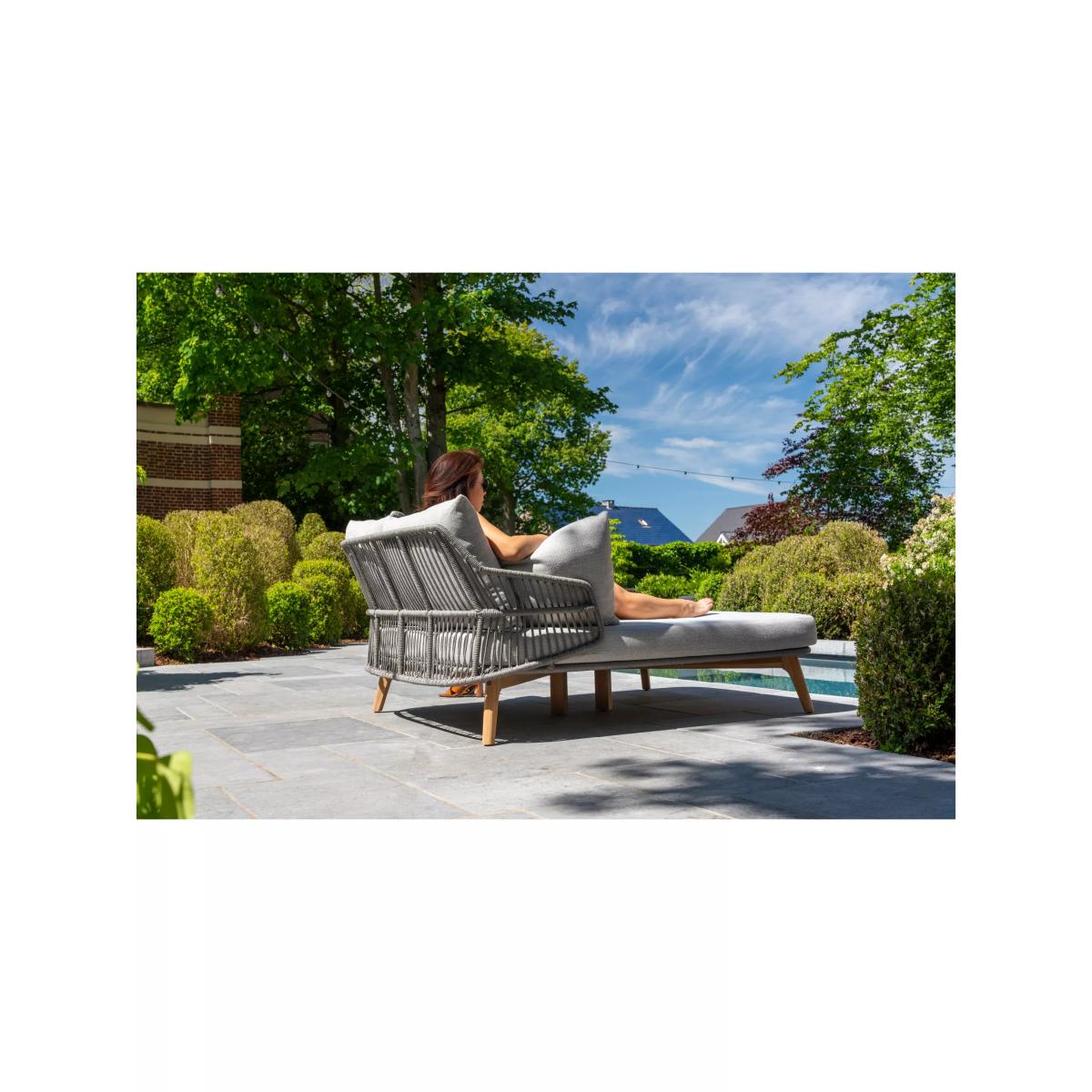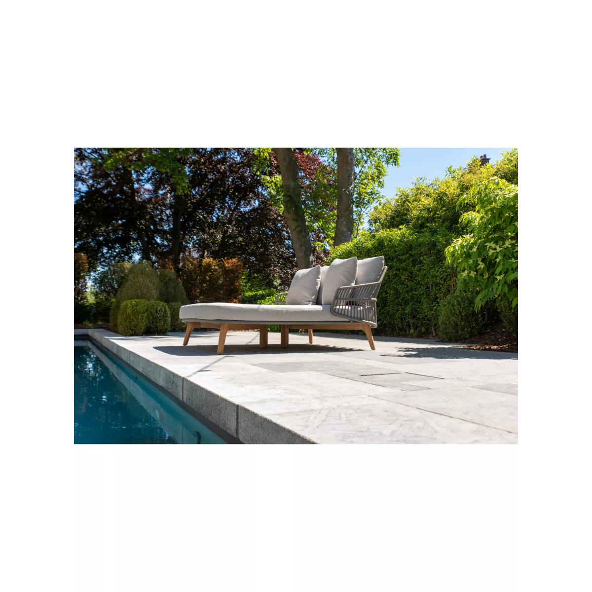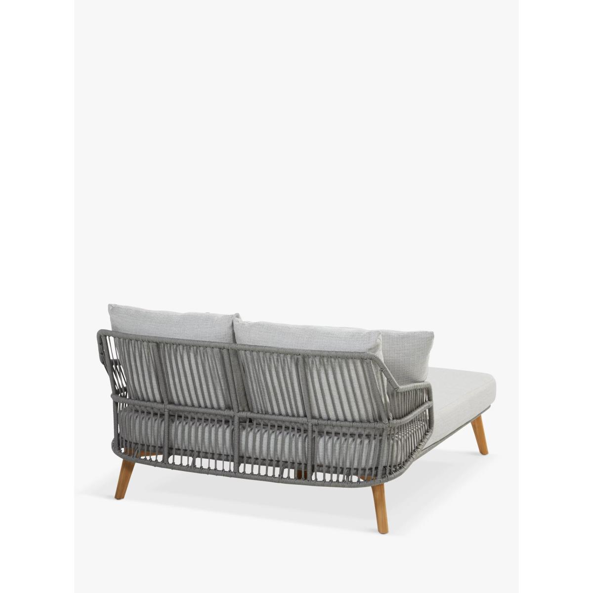 An airy and organic, contemporary Sempre day bed, a weather-resistant design from 4 Seasons Outdoor, for the garden or conservatory. The rope-like design on the day bed is handwoven with a high-quality, durable weave. All the rope materials have a polypropylene base or weave assuring the rope remains taut. The rope contains no hazardous materials and can be fully recycled at the end of its lifetime. The plump foam-filled seating and four scatter cushions give you comfortable support and the covers are removable and machine washable for easy cleaning. The sturdy legs are made of weather-resistant FSC-certified teak wood, sourced from sustainably managed forests. Key benefits: Garden double day bed Rope-like synthetic weave with FSC-certified teak wood legs Plump seating and four scatter cushions with machine washable covers Weather-resistant By choosing this product you are supporting responsible management of the world's forests. The Forest Stewardship Council® (FSC®) is a global, not-for-profit organisation that helps take care of forests and the people and wildlife that call them home. To learn more, visit fsc.org. Want to see it first? You may want to see and get a feel for the product in one of our shops before ordering. We'll be able to tell you where the range you'd like to view is on display.