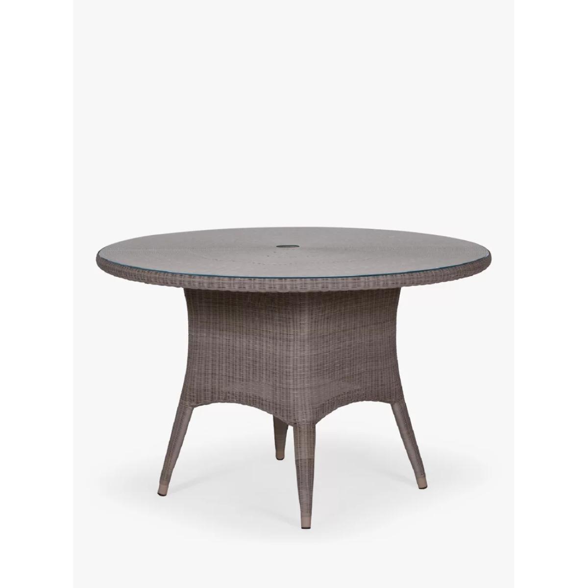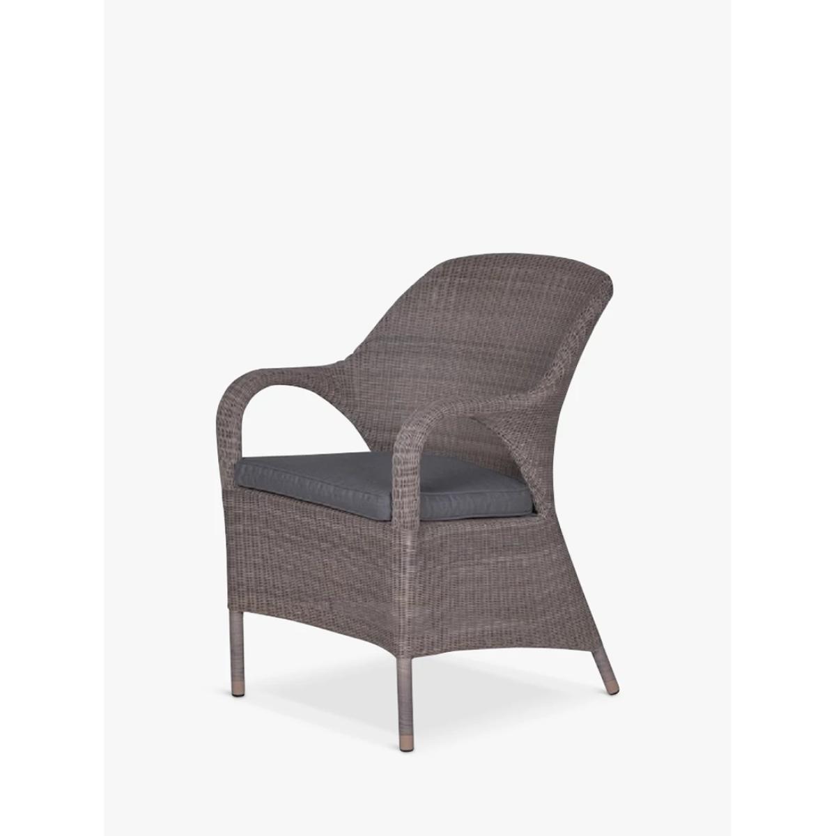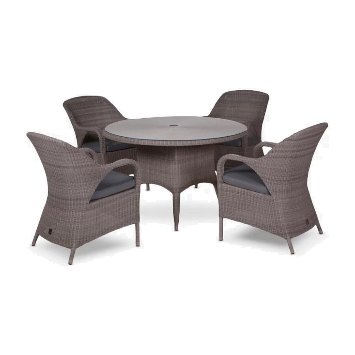 A woven range of garden furniture, Sussex from 4 Seasons Outdoor features high-quality Hularo wickerwork, an attractive hand-woven design that's weather-resistant and durable. The cushion covers are made of Olefin fabric which is incredibly weather-resistant and easy to clean and maintain. This comfortable dining set typifies the Sussex look with curved wickerwork and high-back seating on the four dining armchairs. The round dining table matches the chairs and has a glass top. Key features: Appealing yet robust high-back and curved design 4 dining armchairs Round dining table with glass top Weather-resistant Hularo weave on durable stainless steel frames Weather-resistant seat cushions with machine washable covers Seat height: 49cm Choose the perfect outdoor furniture We have a vast selection of furniture for you to choose from which will suit the home or garden. The majority of our furniture ranges have been hand woven using a synthetic wicker. The thinner the weave, the longer it takes for the skilled workers to complete. All weave types are durable so they’ll last throughout the seasons All woven outdoor furniture is UV protected so it will not fade in direct sunlight All woven outdoor furniture is easy to maintain, simply wipe clean using warm water FlatA weave of various widths which offers incredible value for money Half roundMore detailed with a 3D effect, the half round is a round weave in half which displays a wicker appearance on the top and hollowed underside Double half roundA double strand of half round, this is a wider width of weave which achieves an expensive appearanceRound weaveA very tight weave which is available in various widths, from 2mm to 5mm RopeA selection of our ranges have been made using rope. The yarn is made up of 10,000 (approx) woven strands with a double core for extreme strength, does not attract mould even if wet for a long time and is UV resistant.
