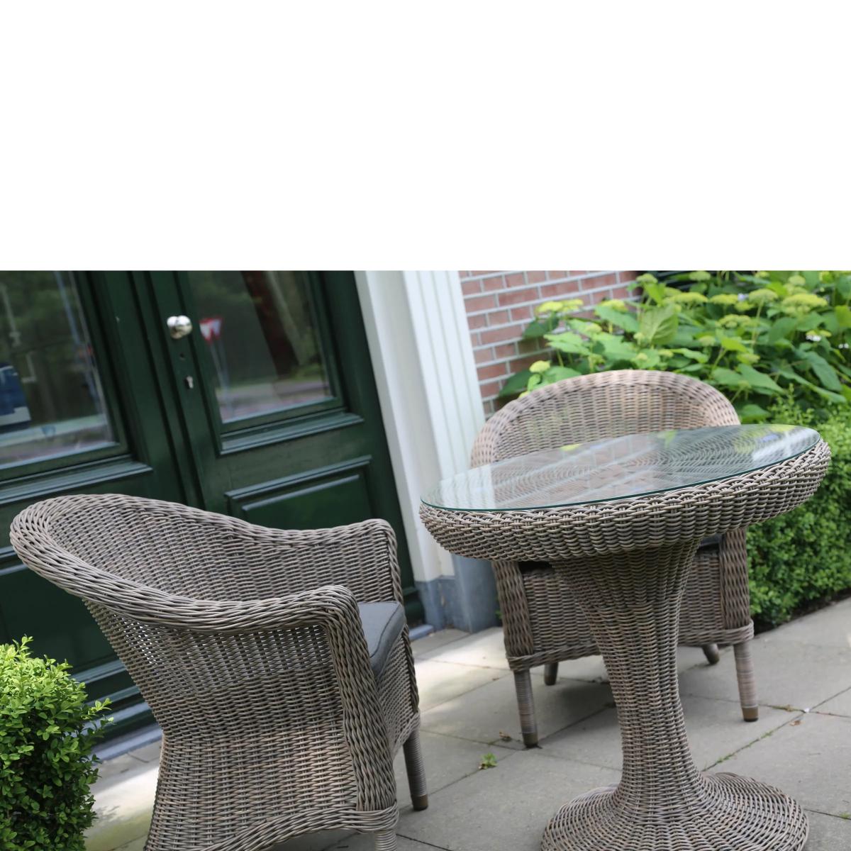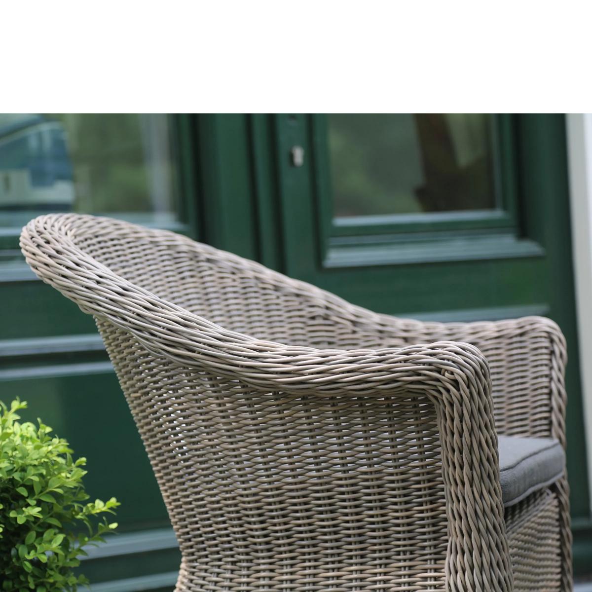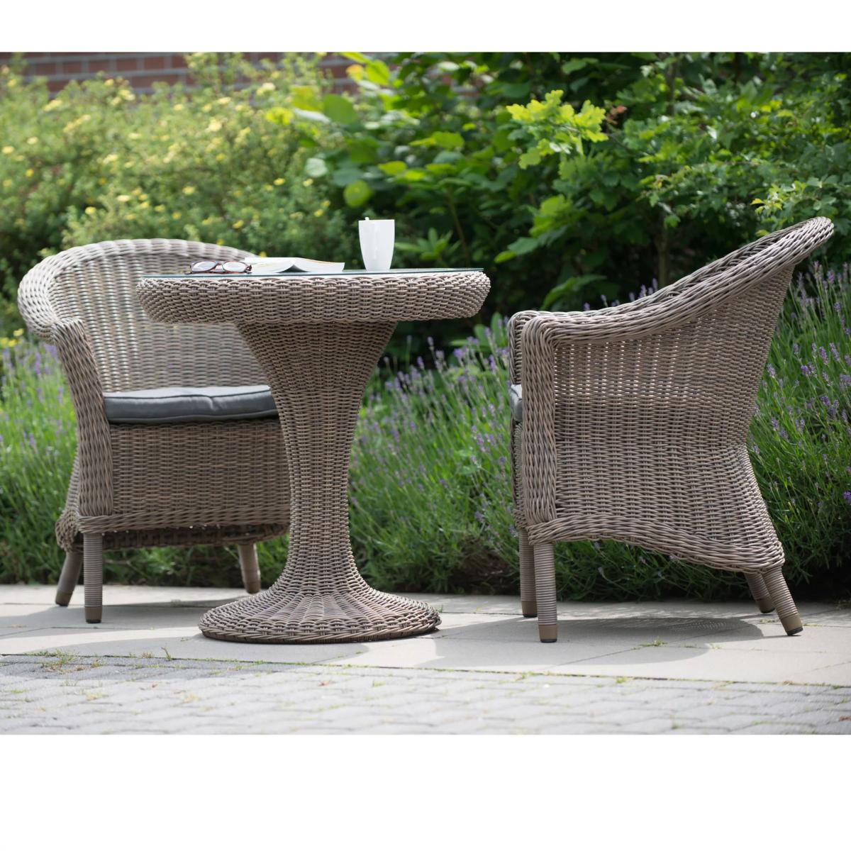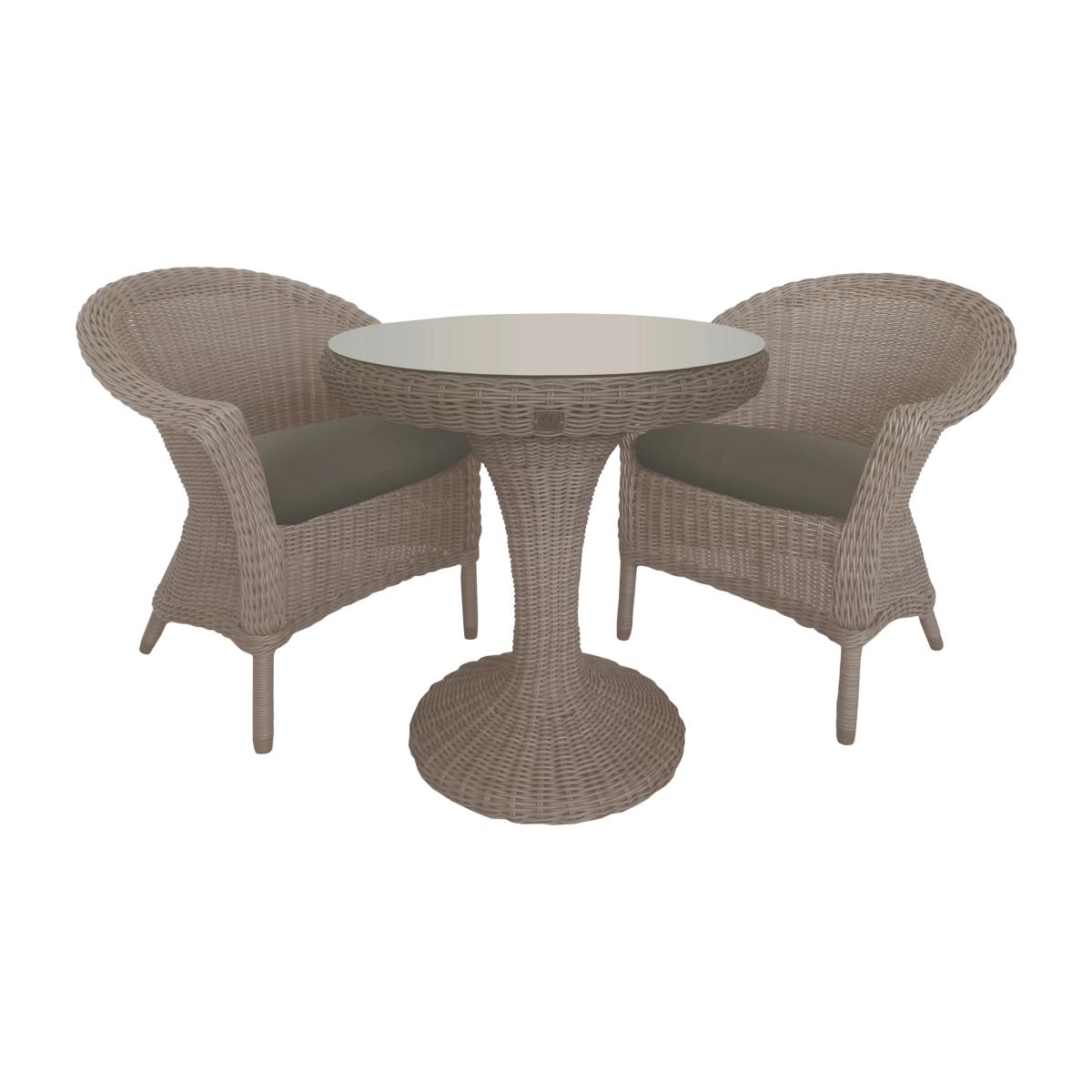 Appealing table & chairs set Seats up to 2 5mm mono extrusion weave Weave can withstand 5,000 hours of sunlight before fading Weatherproof, UV resistant & fungus-free cushions Wine and dine with a loved one outside in the garden this season on the Valentine bistro set. A wicker furniture range, Valentine features tables, chairs and dining sets which will make a beautiful addition to the garden or conservatory. Please note: not all our ranges are on display in our shops.