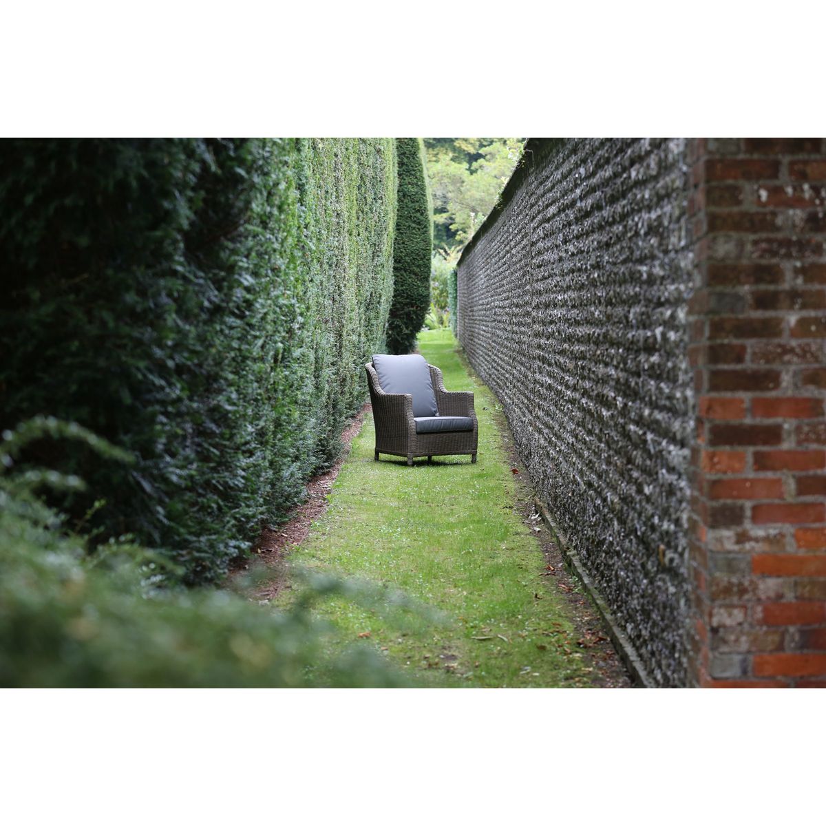 Appealing yet robust high back design 5mm Hularo weave on aluminium frame Weatherproof, UV-resistant and fungus-free high back cushions Traditional seating has been captured in an appealing design with the Valentine armchair which comes complete with luxurious back cushions to ensure extra comfort. A woven range, Valentine features chairs, tables and benches which are made from a durable weave to create the ideal garden or conservatory furniture. Please note: not all our ranges are on display in our shops.