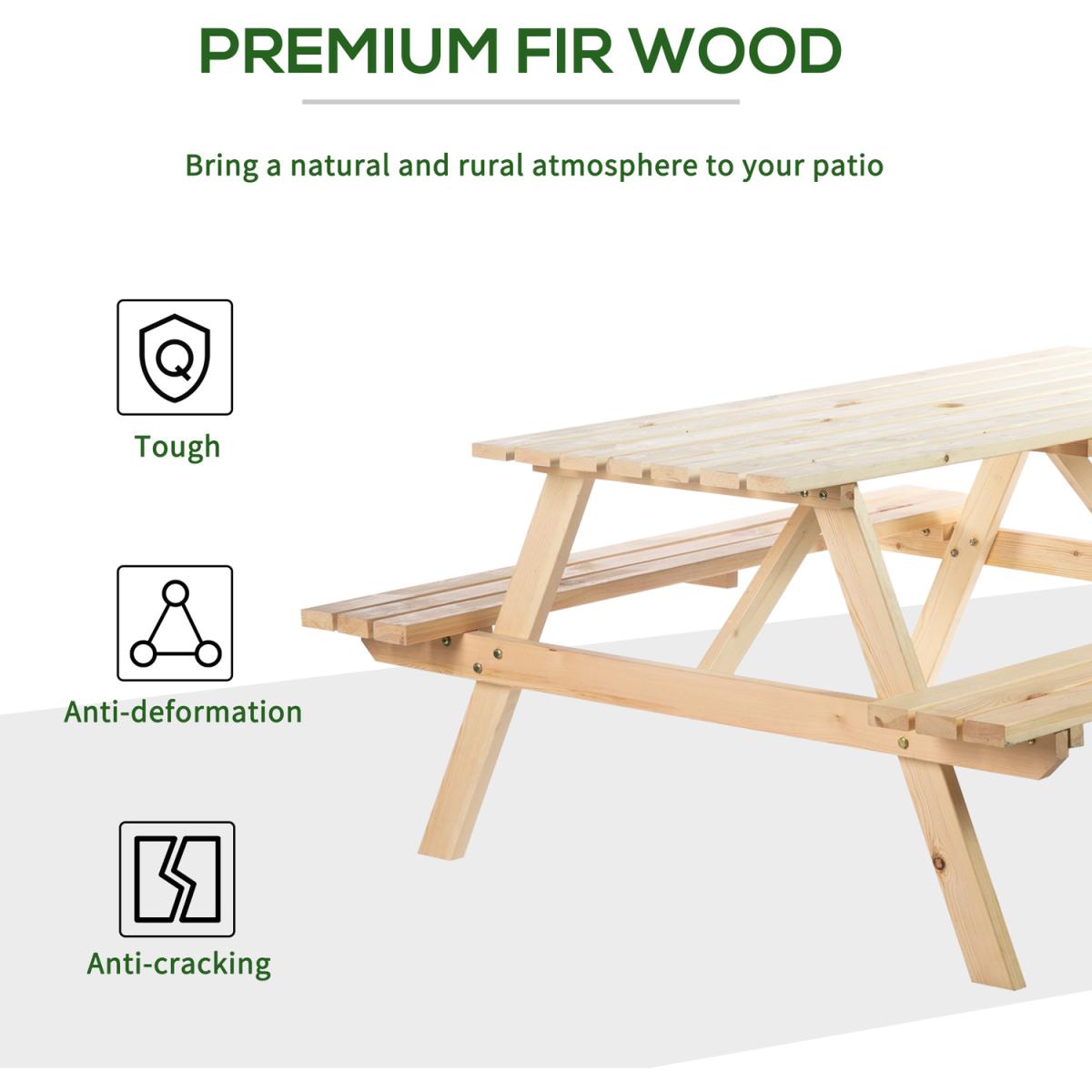 4 Seater Outdoor Wooden Picnic Table - Natural Wood Colour