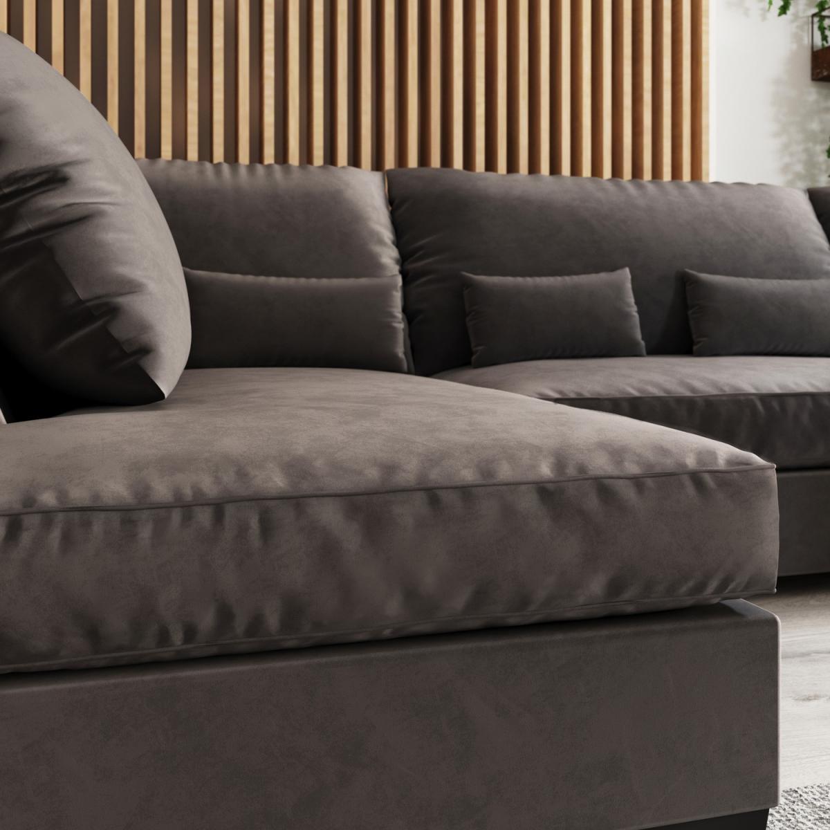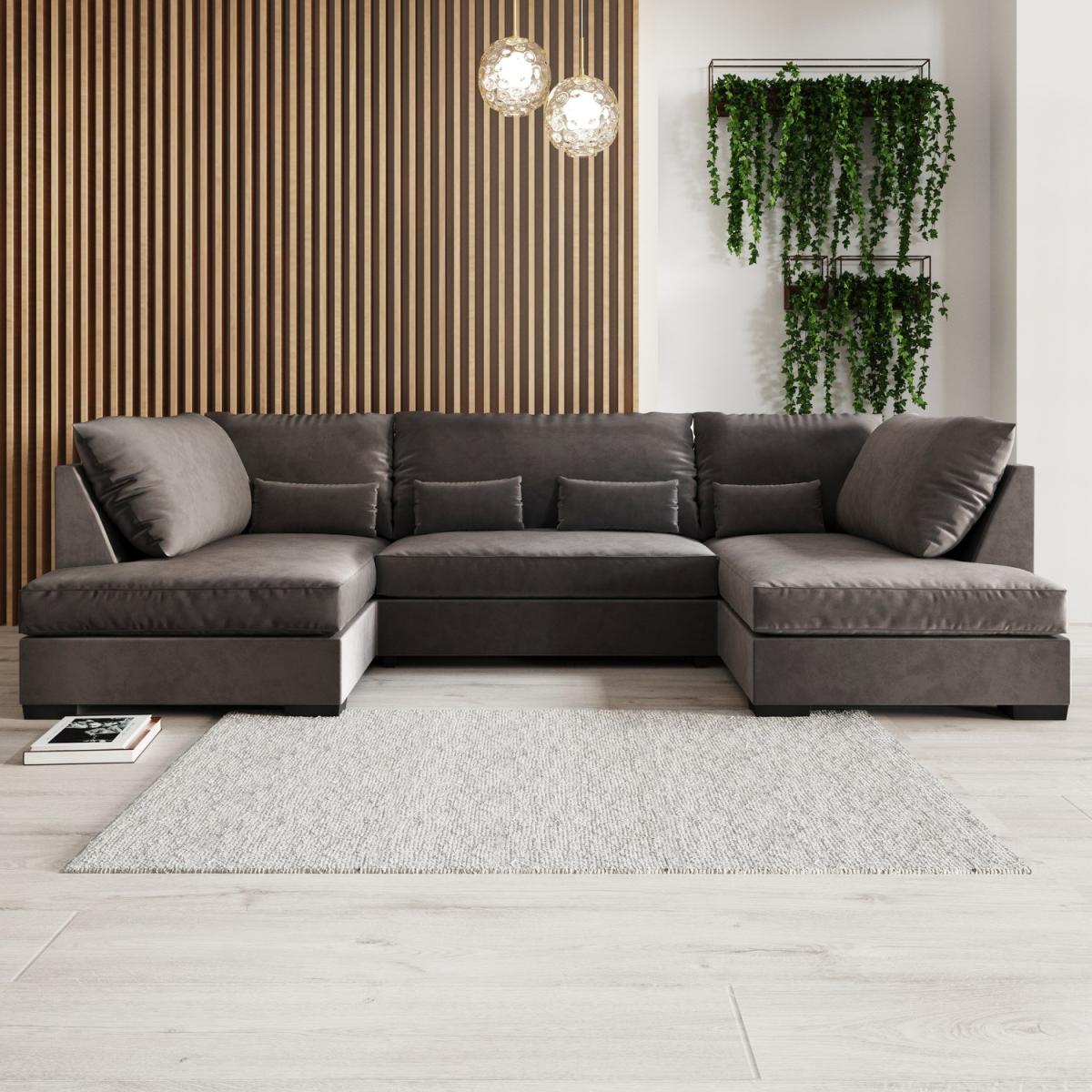 Upgrade your seating arrangements with the Madison U shaped sofa. This large statement sofa with its neutral appearance will complement any home styling. Comfortably seat the whole family for movie nights and never run out of space for extra guests. The beige woven fabric and soft plush cushions offer just the right amount of support to help you relax. Still need more seating? The matching footstool will add that finishing touch to the set, as well as create an additional seat.