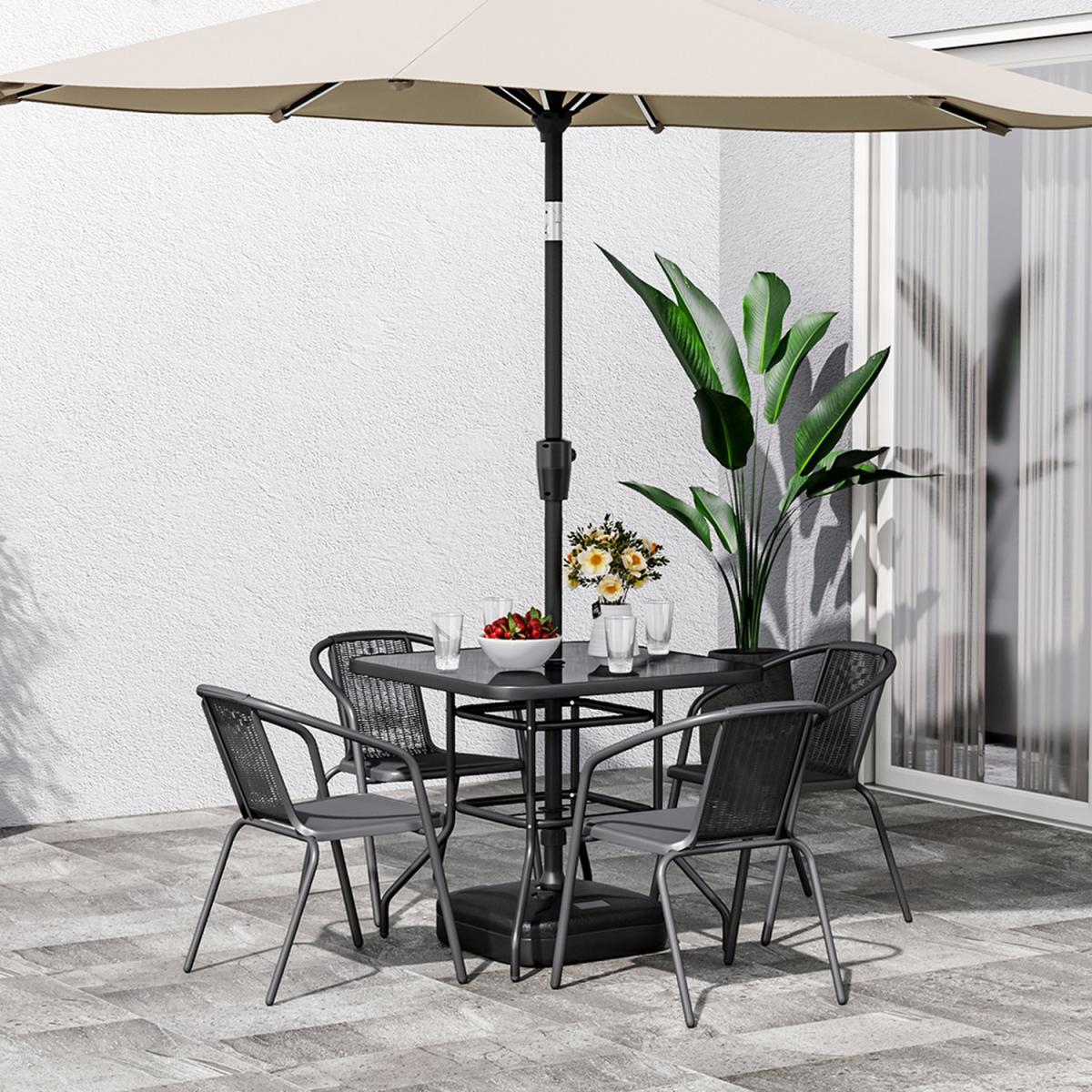 4 Person Rectangular Glass Top Table chairs Grey Parasol and Base - Black