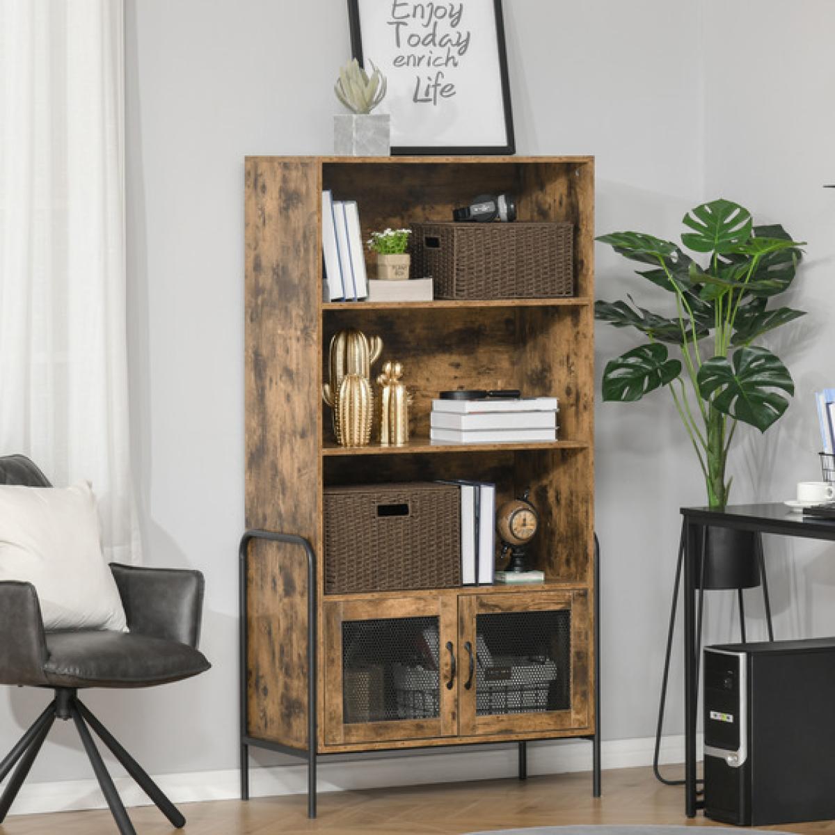 4 Tier Bookcase Display Unit with Steel Leg - Rustic Brown