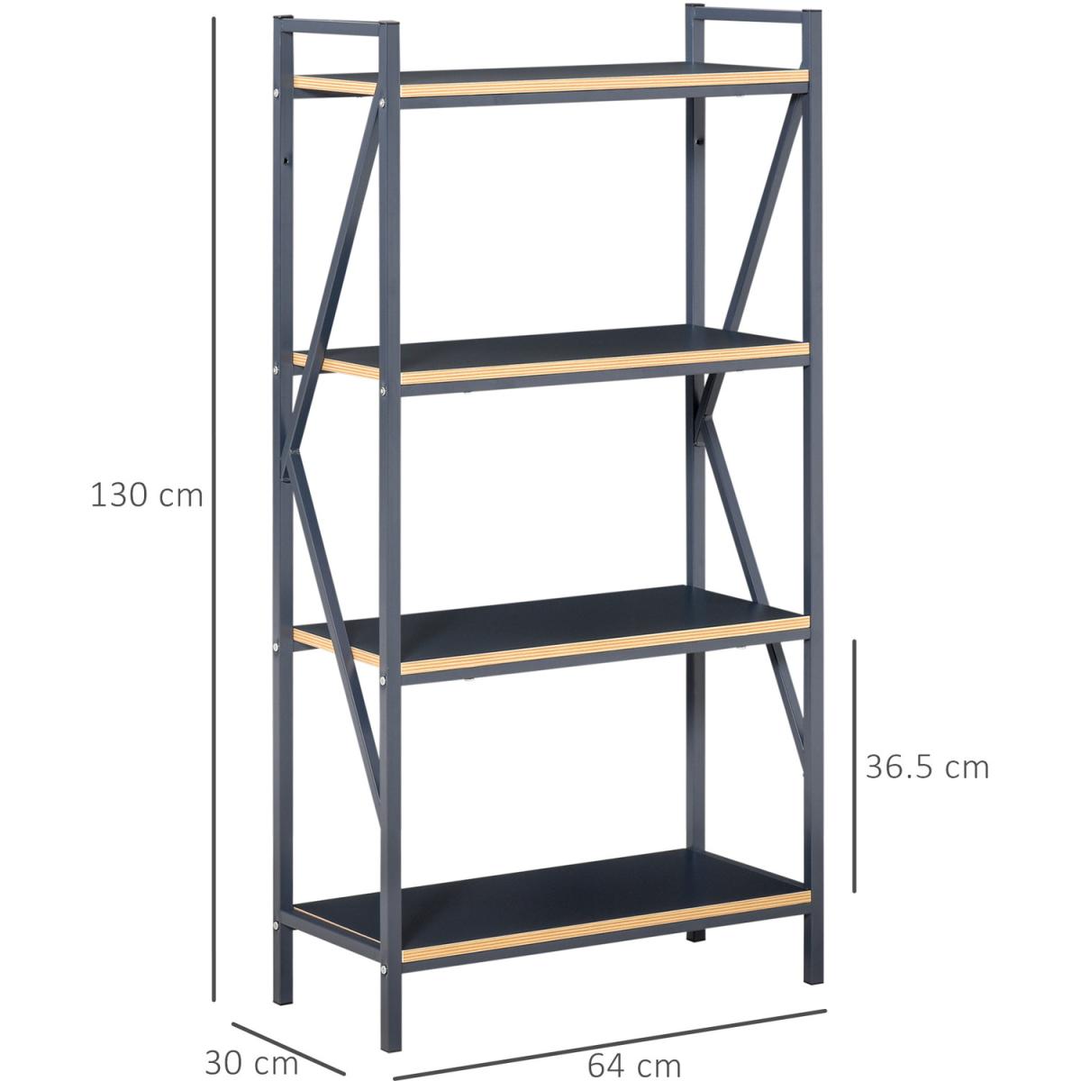 I love this dark blue bookcase for its versatility and modern aesthetic. Its sleek, minimalist design makes it a great addition to contemporary or industrial interiors, but it can also work well in more eclectic spaces when styled thoughtfully. The four tiers provide ample storage for books, decorative objects, or plants, making it practical without sacrificing style. For a polished look, consider colour-coordinating your books and accessories, and layer items to add depth. Placing it in a corner or next to a desk can create a functional yet stylish storage solution, especially in workspaces or living areas where you want an organised but approachable vibe.