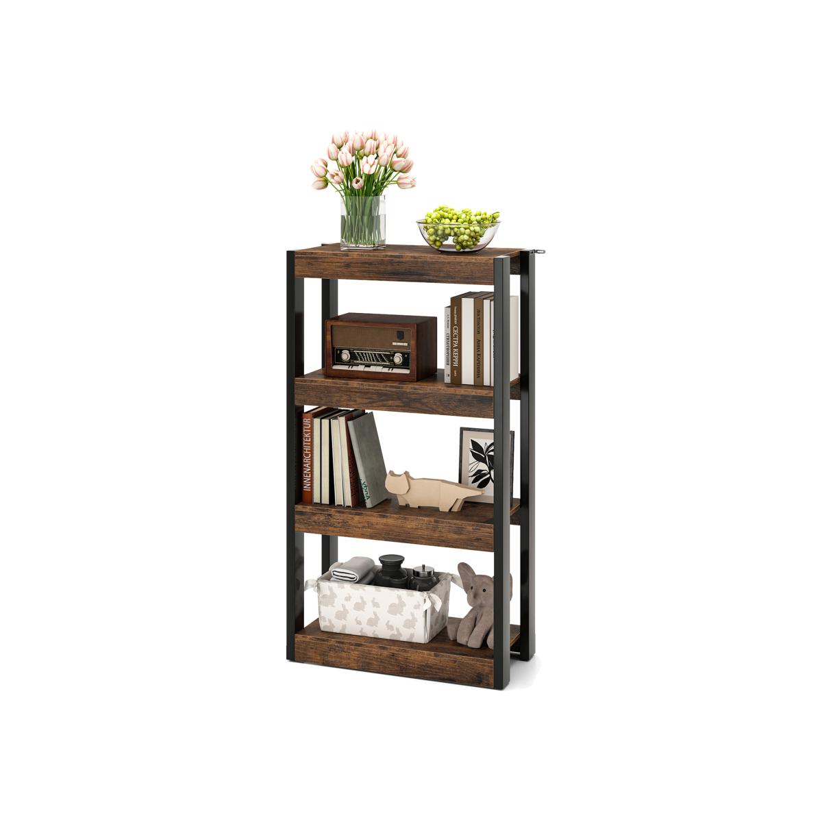 I particularly like this brown four-shelf unit for its clean lines and sturdy metal frame - it slots easily into both contemporary and industrial-style rooms without overwhelming the space. Its slim profile makes it ideal for hallways, home offices or snug living areas, and the wood-effect shelves pair nicely with neutral decor or pops of colour. For styling, group hardcover books upright on one shelf, place woven baskets or boxes on the lower tier for hidden storage, and add a small plant or decorative object at eye level to break up straight lines.