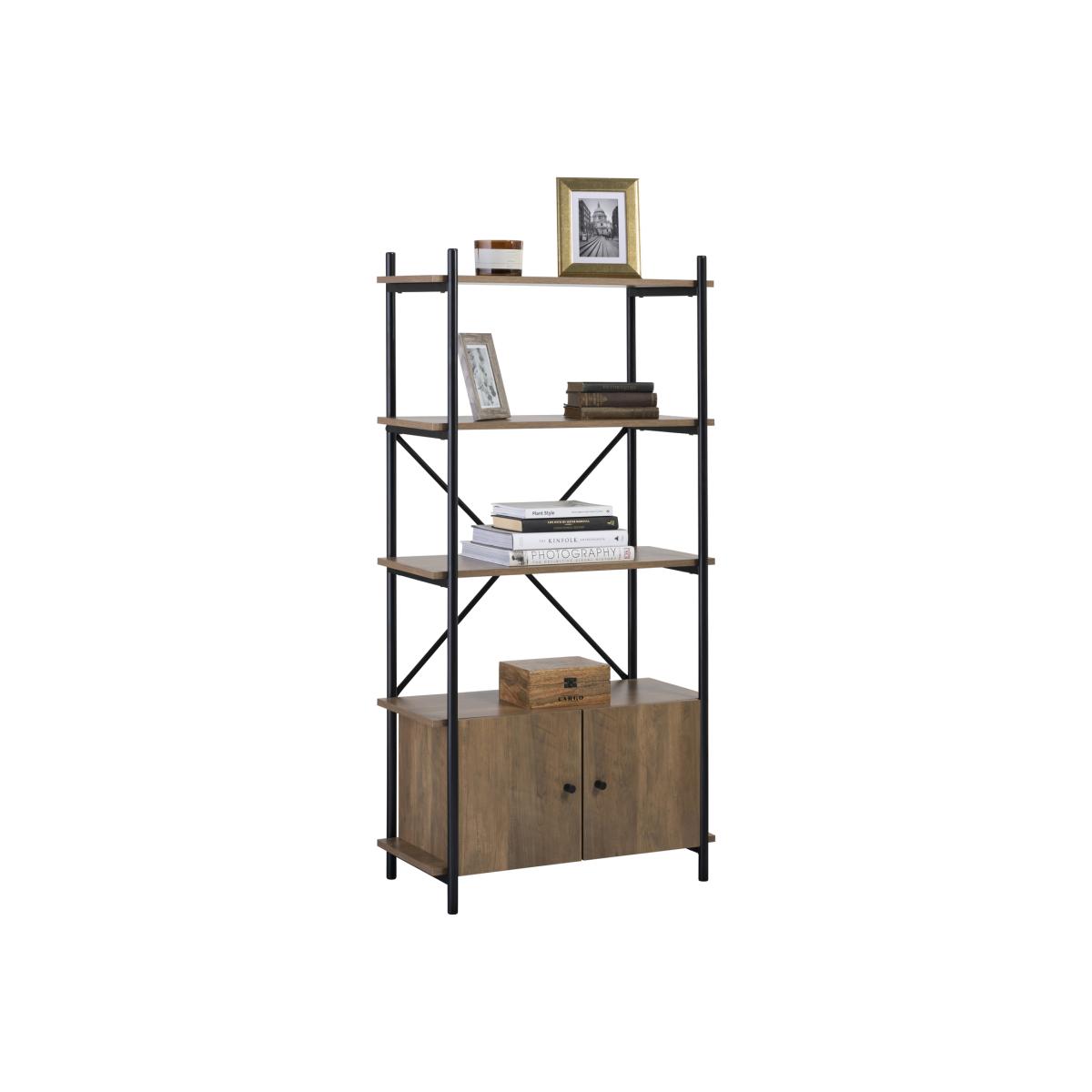 4 Tier Contemporary Industrial Bookcase Shelving With Cupboard 1410mm H - Black and Oak