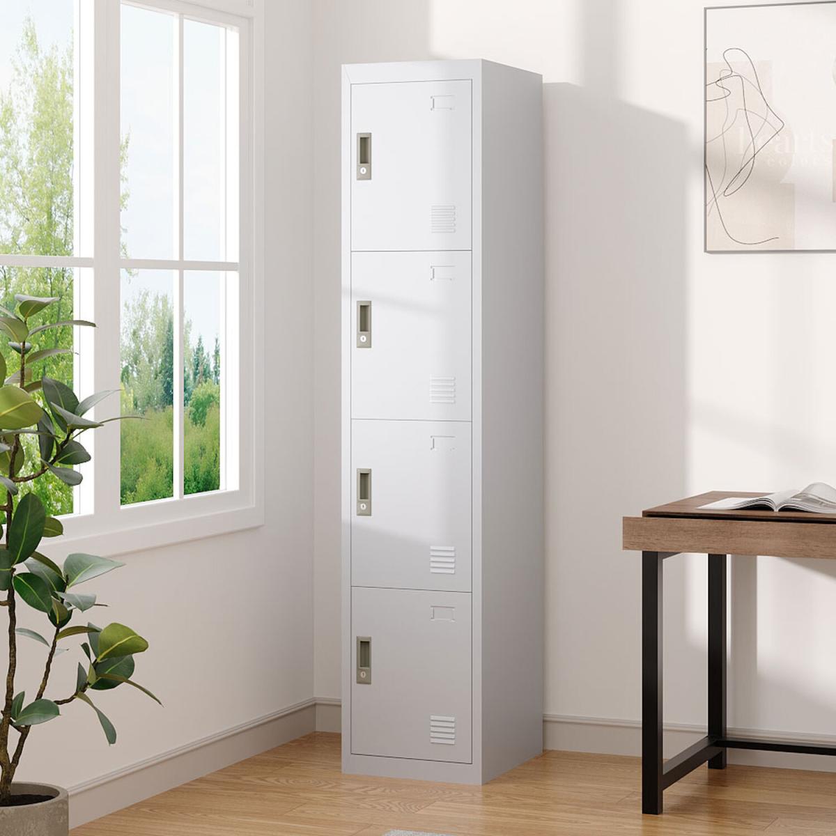 This four-tier file cabinet is uniquely designed and functionally practical. Four vertical cabinets provide ample storage space, making them an ideal choice for storing files and contracts. The narrower cabinet body ensures it does not occupy too much floor space, allowing you to place it in the corner of your office. Each cabinet door comes with a label slot, facilitating your marking and identification. Each cabinet has its own key control, ensuring the security of items while enabling you to efficiently manage and use documents.
