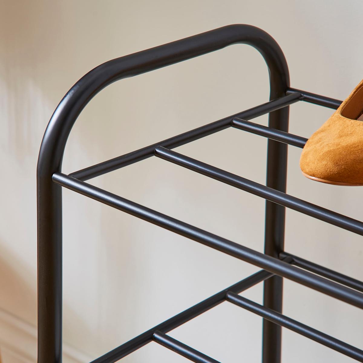 * 4 tiers shoe storage* Total can hold 16 pairs of shoes* Max load 16kg* Easy to assemble with simple instructions* Flat structure Too many shoes and not enough storage? Well our 4 Tier Metal Shoe Rack might just be the perfect storage solution for your trainers, heels, slippers and more! With a max load of 16kg, you can store up approximately 16 pairs of shoes, so there's no complaining about leaving your shoes all over the place. With easy to assemble, simple instructions, you can build this shoe rack in no time!