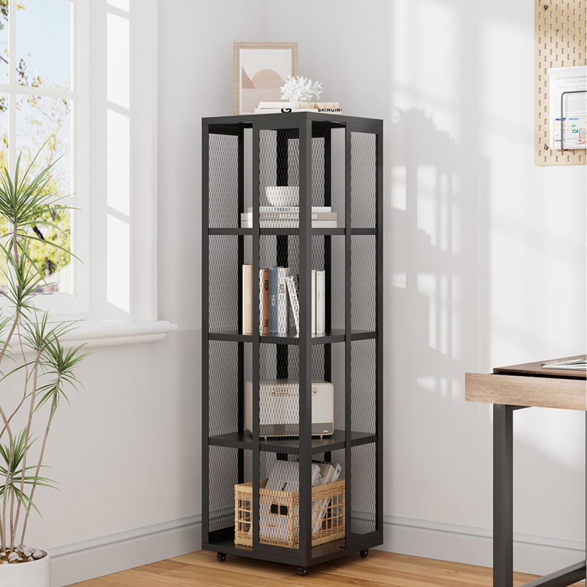 This office file rack boasts a sleek black design with plenty of storage space for files and books. Its modular storage system ensures easy organisation, allowing you to quickly locate materials. Compact in size, it takes up minimal floor space, making it ideal for any room, including the living room, bedroom, or balcony. It can also double as a display cabinet for showcasing collectibles or artwork, enhancing your home decor.