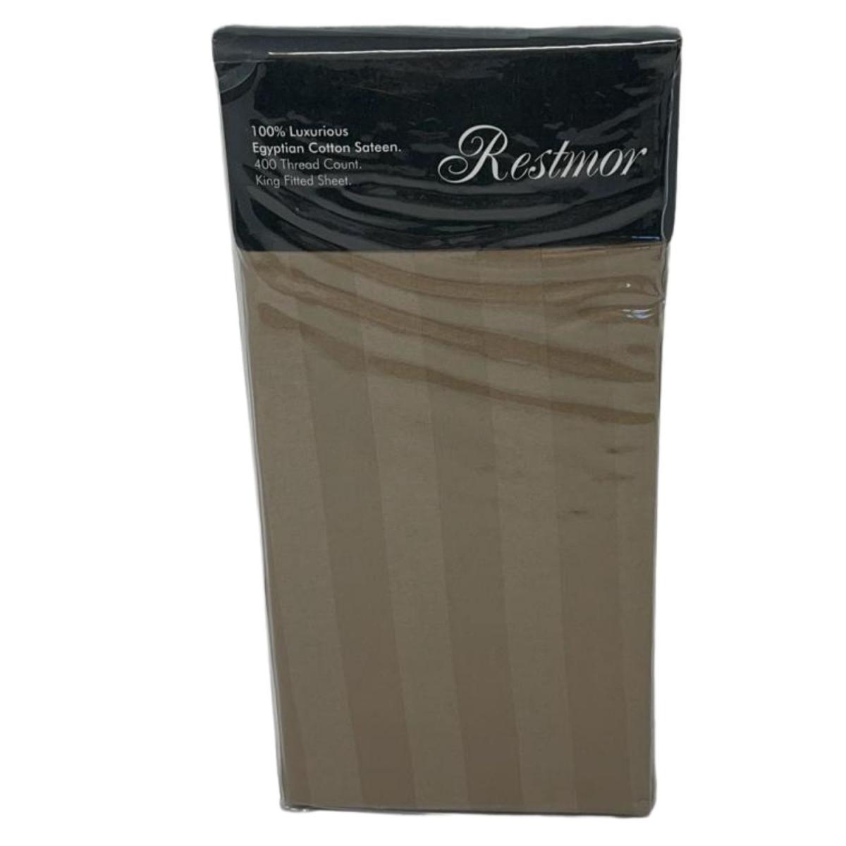 400 Thread Count King Fitted Sheet - Brown Stripes