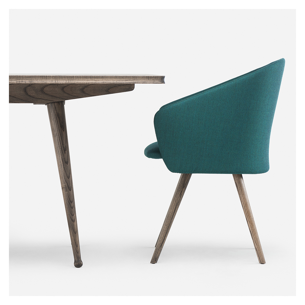 Relax in the refined style of Matthew Hilton's upholstered 406 Saia Dining Chair in black oiled ash, a beautifully designed tub dining chair, accented with exposed timber and supple upholstery. The ideal seating solution, the 406 Saia Dining Chair's frame features four black oiled ash legs with exquisite joinery specially designed by Matthew Hilton and De La Espada. Perfect for any dining area, the Dining Chair can be upholstered in a selection of six available Kvadrat Canvas 2 fabrics. Designed by Giulio Ridolfo, the Canvas 2 collection is woven from 90% new wool worsted and 10% nylon for an extremely hardwearing finish. Expertly crafted by De La Espada for optimal comfort and durability, the 406 Saia Dining Chair by Matthew Hilton is sure to accent any space with sophisticated, contemporary style. Matthew Hilton is renowned as one of Britain's most esteemed industrial designers and has designed for leading manufacturers across the world, over an illustrious career spanning 30 years. His furniture is held in the permanent collections of the Victoria and Albert Museum, the Geffrye Museum and the Manchester City Art Gallery.