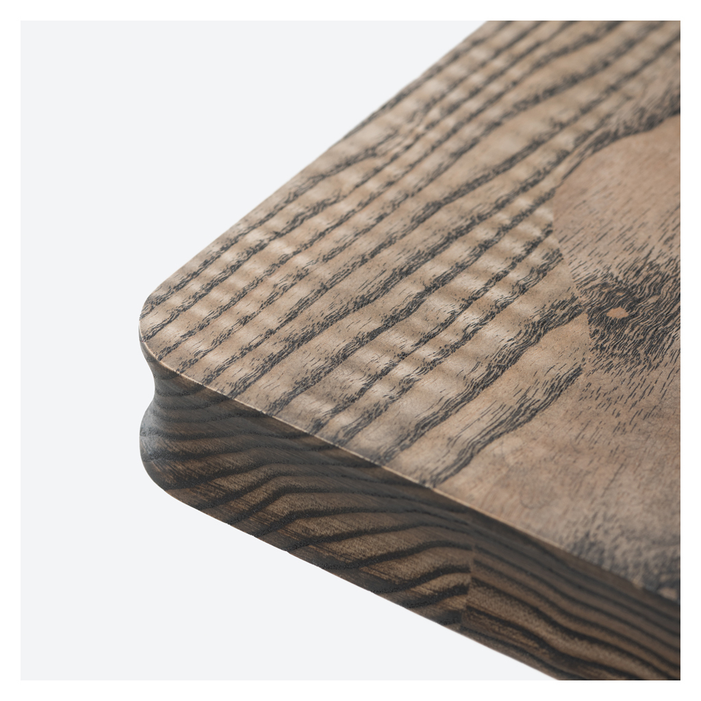 Designed by Matthew Hilton, the 408 Tavli Dining Table uses generous planes of solid black-oiled European ash to create an elegant form that resonates with simplicity. Named after the backgammon tavli board, the table features decorative joint detailing that resembles its namesake. Expertly crafted in Portugal by De La Espada, the striking table is finished with four tapered legs that give it the perfect contemporary edge. Matthew Hilton is renowned as one of Britain's most esteemed industrial designers and has designed for leading manufacturers across the world, over an illustrious career spanning 30 years. His furniture is held in the permanent collections of the Victoria and Albert Museum, the Geffrye Museum and the Manchester City Art Gallery.