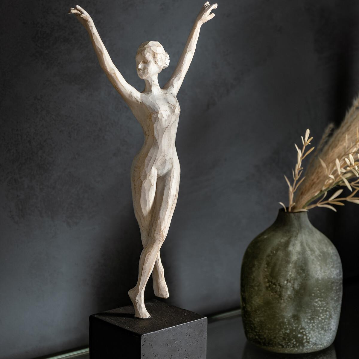 I love this ballerina sculpture for its elegant, minimalist appeal-it's a subtle statement that can elevate a variety of interiors. It works particularly well in contemporary or modern schemes, where its clean lines and soft silhouette complement sleek furniture and neutral palettes. For practical styling tips, place it on a mantlepiece, console table, or open shelving to create a focal point. Pair it with simple accessories like vases or books for a balanced, curated look. Due to its height and visual interest, it’s best to keep surrounding decor minimal to let the sculpture stand out and really make an impact.