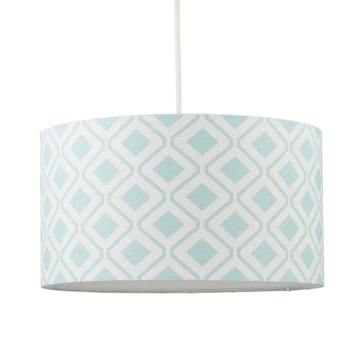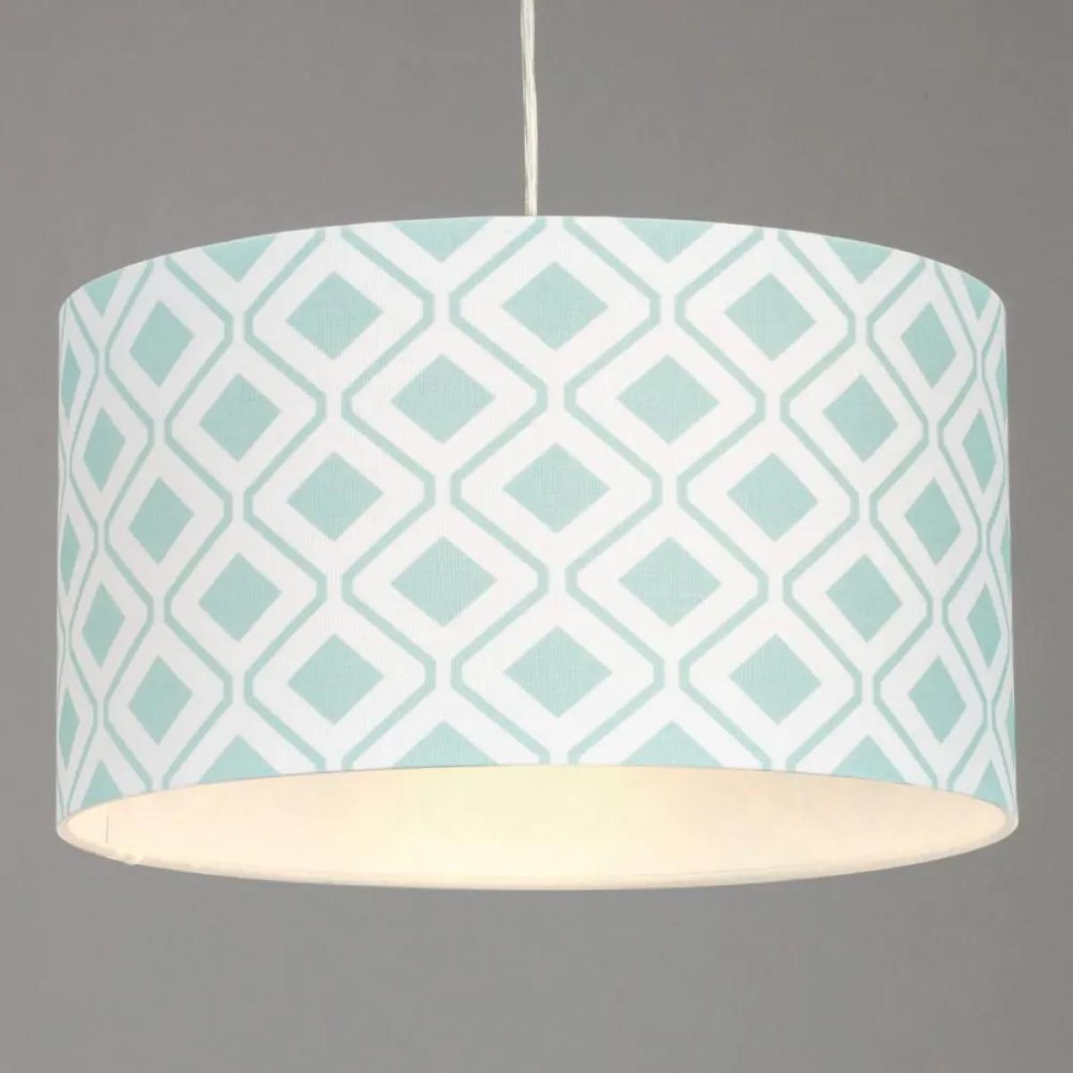 I really like this small pendant because of its fresh minty blue colour and the subtle diamond pattern, which adds a soft geometric element without feeling too bold. It works particularly well in modern or coastal-inspired interiors, where light colours and clean lines are key. For practical styling tips, consider pairing it with complementary tones like whites, greys, or natural wood finishes to keep the space light and airy. It also makes a lovely statement in a children's room or a cosy nook, bringing a touch of colour without overpowering the overall decor. Its size makes it ideal for smaller spaces or as a grouping in larger areas, providing both style and subtle illumination.