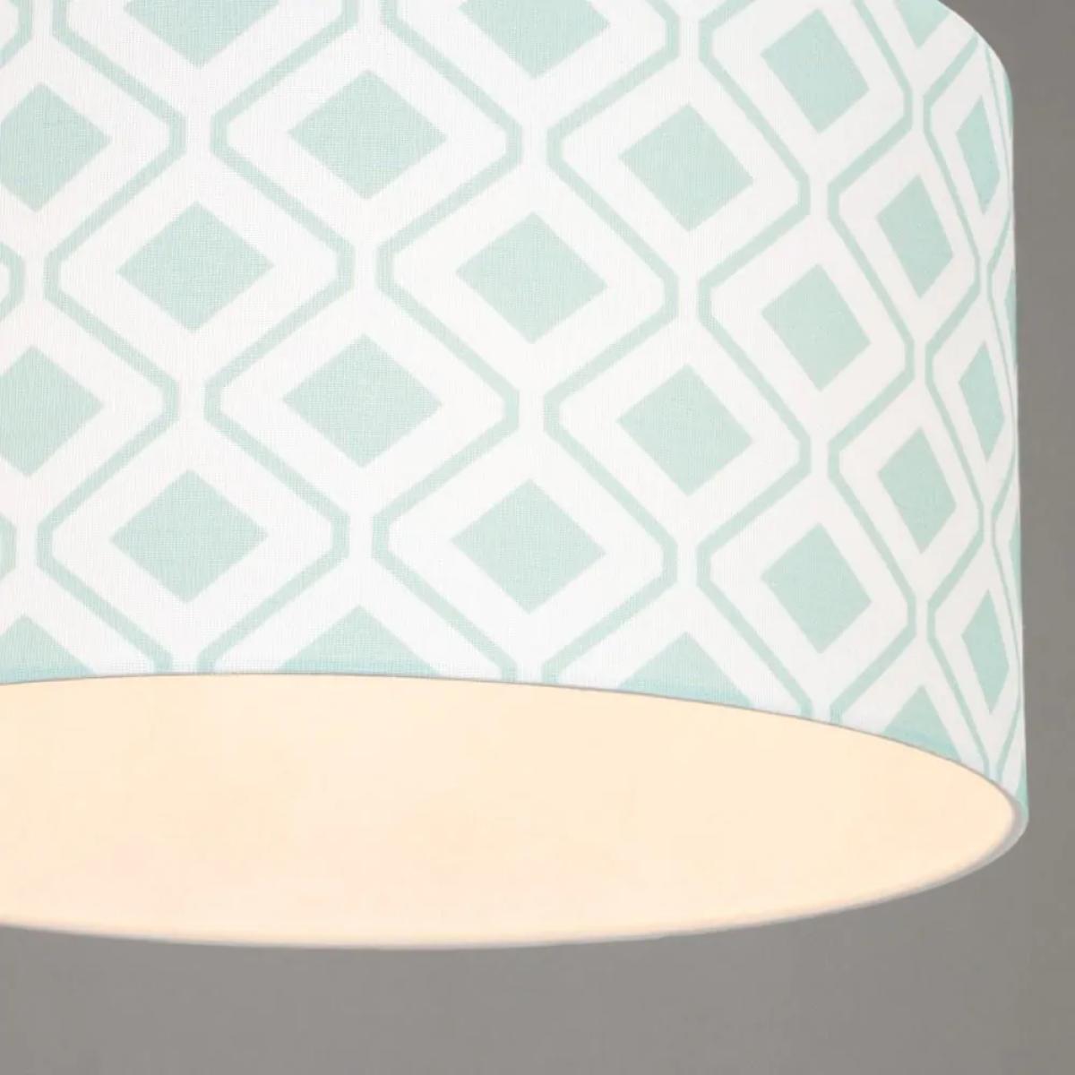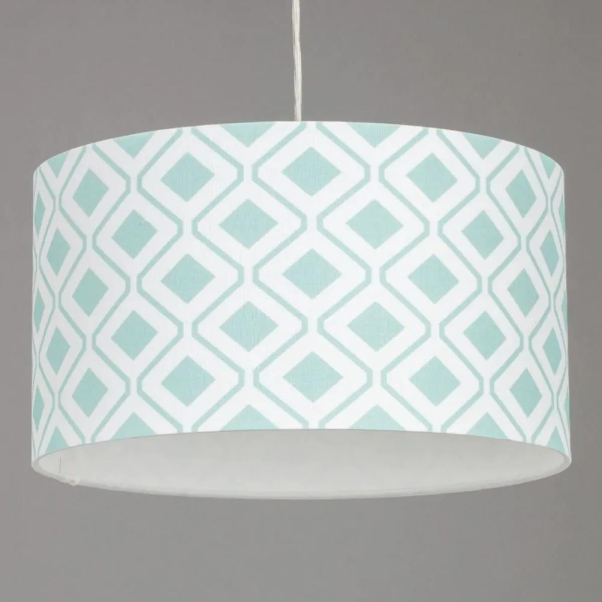 The 40cm Diamond Shade in Minty Blue is the perfect accent lighting addition to your interior lighting arrangements, with a minty blue colour creating a light pop of colour, as well as a modern diamond-style pattern creating a decorative look in your room. The cylindrical shade encompasses the light within and diffuses a warm, ambient glow throughout your room, perfect for creating a soothing, more relaxed atmosphere in your interior.