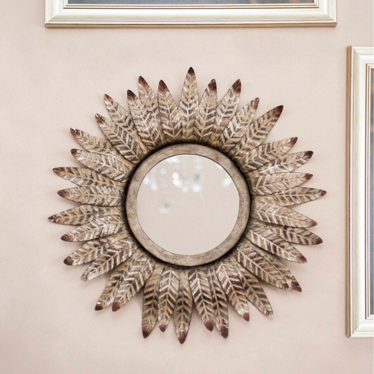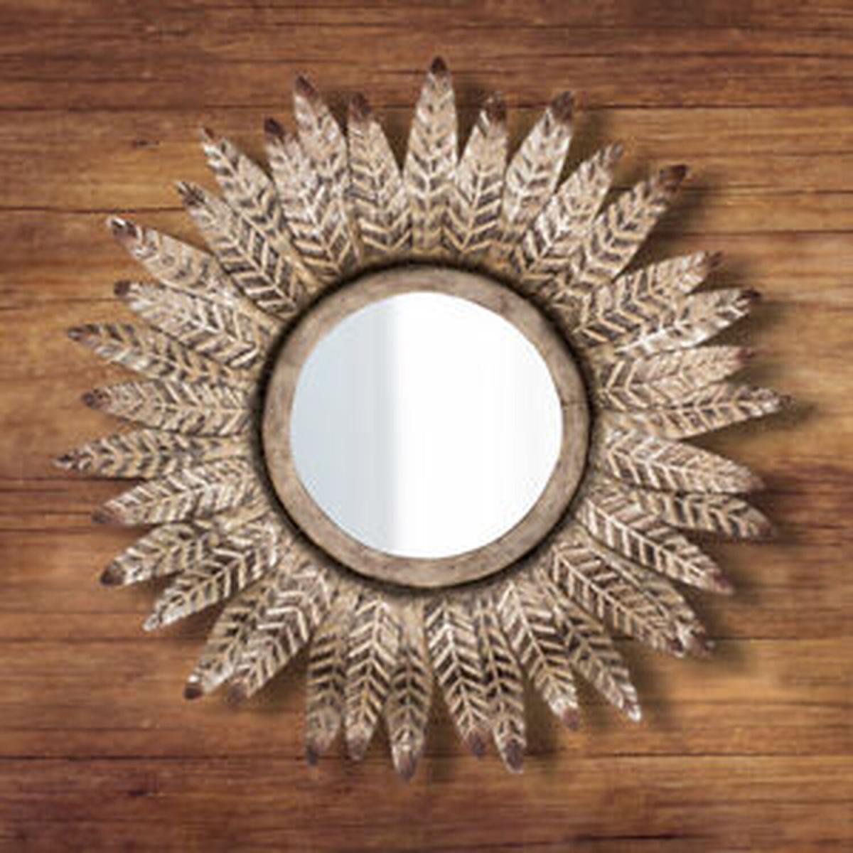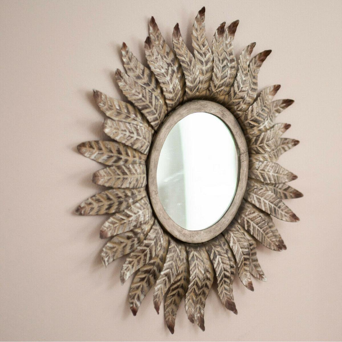 Add to your home décor with this Hanging Mirror. A feathered effect frame is sure to make this stand out. Hang in any room of your home, what better way to get a look at yourself as your passing. With a metal frame around the mirror, this mirror has a distressed effect and is sure to last for many years to come. These mirrors are easily hung with the 2 hanging hooks attached to the back and come with fixing screws.