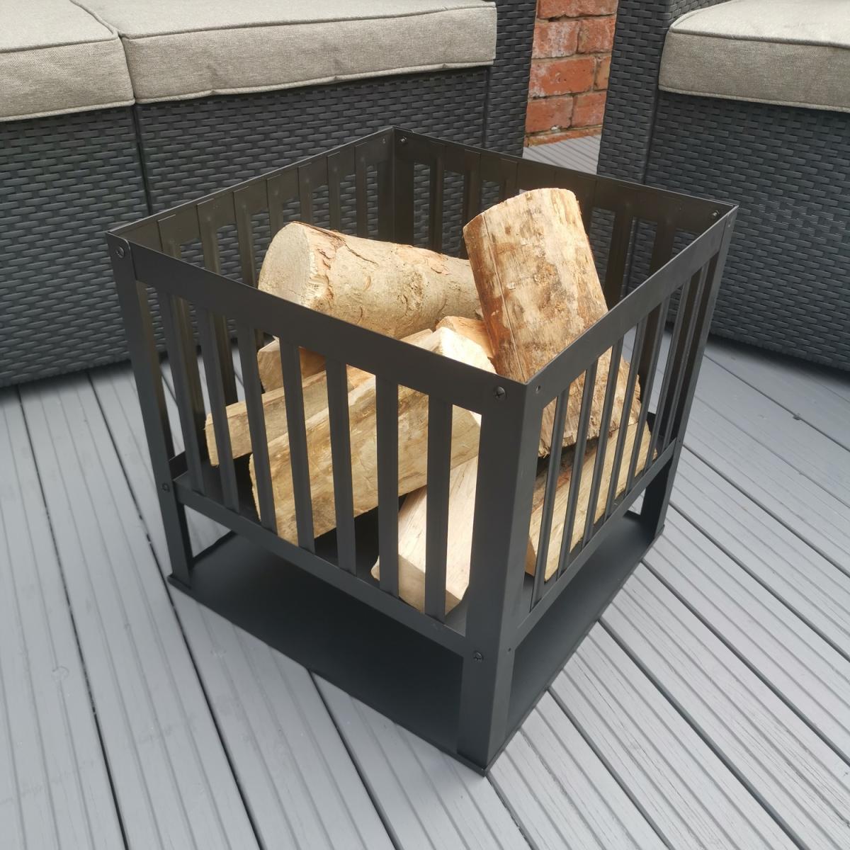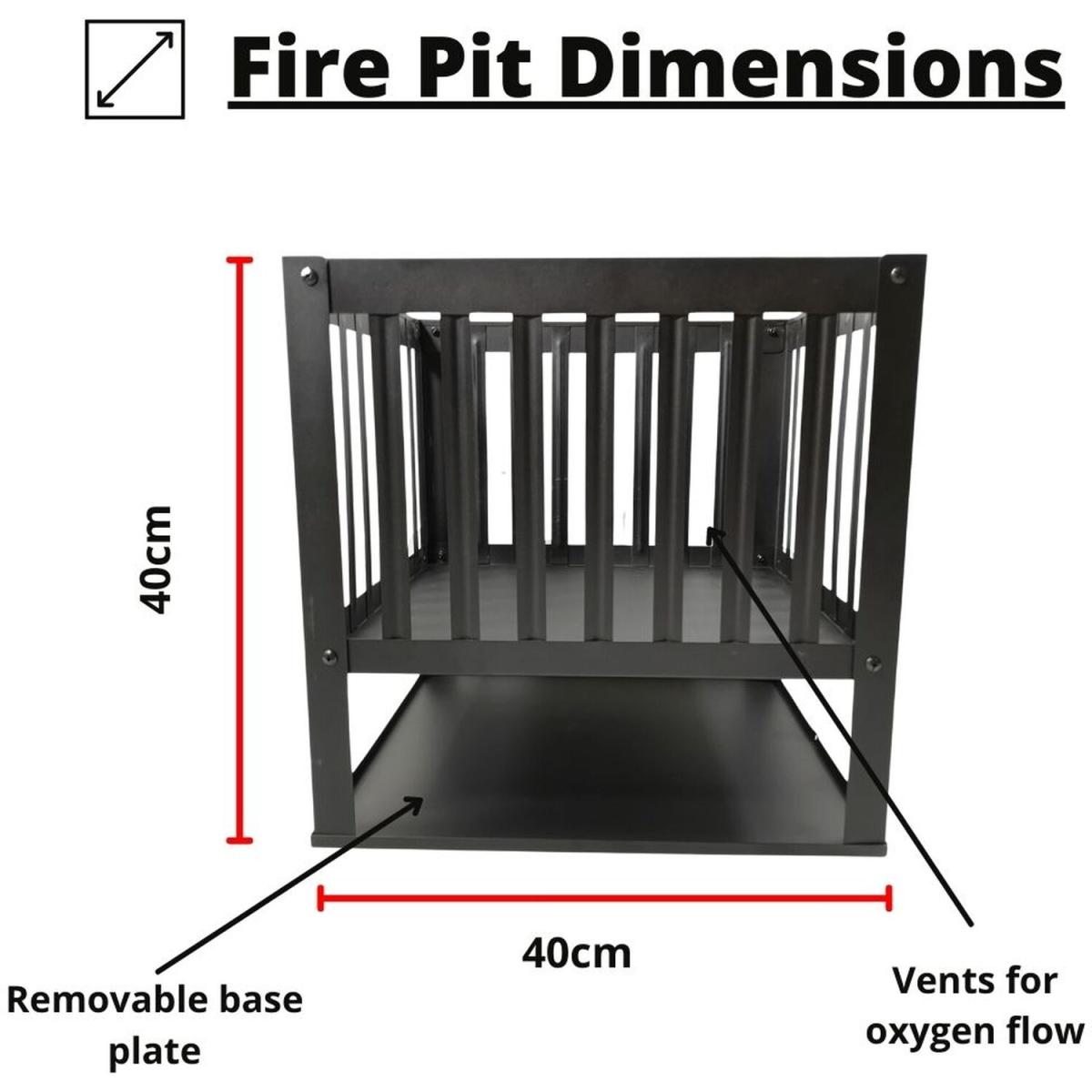 40cm Square Fire Pit Basket Garden Patio Wood Solid Fuel Burner - Black
