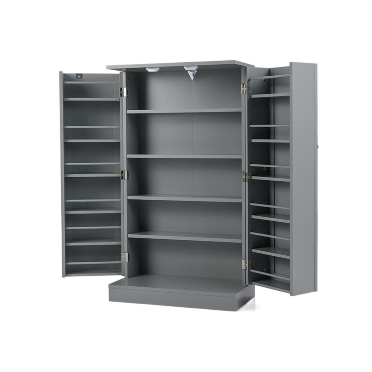 This pantry cabinet stands at 41'' tall with ample storage space, including a 5-tier middle cabinet and 6 door shelves with anti-falling barriers on each side. Its 6 shelves are 3-position adjustable. Thus, you can easily organize your snacks, drinks, baking supplies, seasonings, dinnerware, and more. Moreover, the kitchen cabinet is firmly anchored by the anti-tipping kit for optimal stability. This cabinet supports up to 115 kg with ease. For easy access, the sideboard cabinet features a 2-door design with a wide 180-degree opening range and metal pulling knobs.