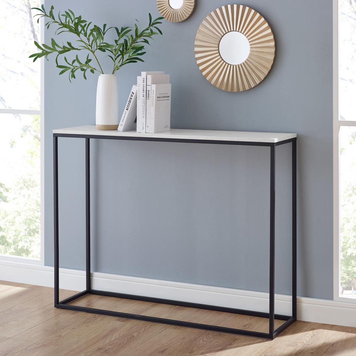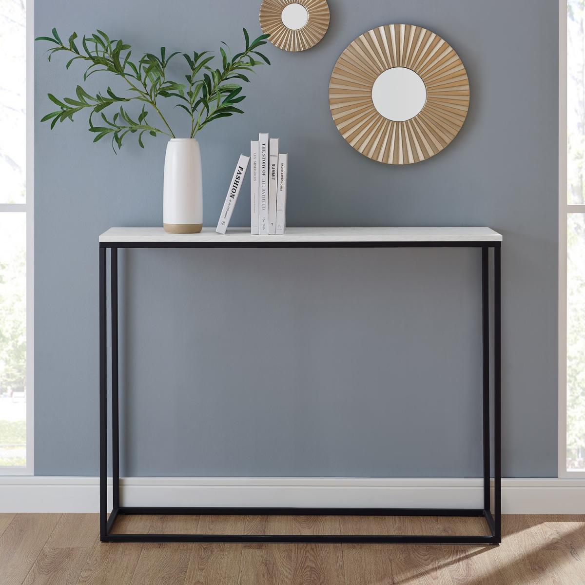 Courtney was sick of losing her keys. That's why she bought this stunning 42” modern open box entry table. Courtney loves that the table is tall enough for her to quickly grab or put down her keys without a second thought. She also likes that the piece serves as an accent table to her entryway. During different seasons she enjoys decorating the high-grade laminate top with holiday décor. The painted metal legs give such a vibrant shine and the two-toned look is so glamorous. Courtney loves that this open box style table comes in a variety of colors. She chose the faux white marble and painted gold combo. What can Courtney say, she's an interior design diva. Be like Courtney and improve your organizational space while maintaining a chic style. And never lose your keys again either.