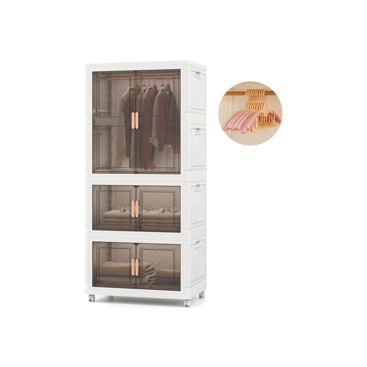Make room for style and convenience with these sleek, spacious storage bins. Boasting a whopping 421. L large capacity, this closet organizer is a smart storage solution! Featuring a hanging rod, 10 hangers, and extra bottom storage, all your clothes and accessories will find a home. Setup's a snap - literally! No tools, no fuss. Plus, moving it is a breeze, thanks to smooth-gliding, lockable casters.