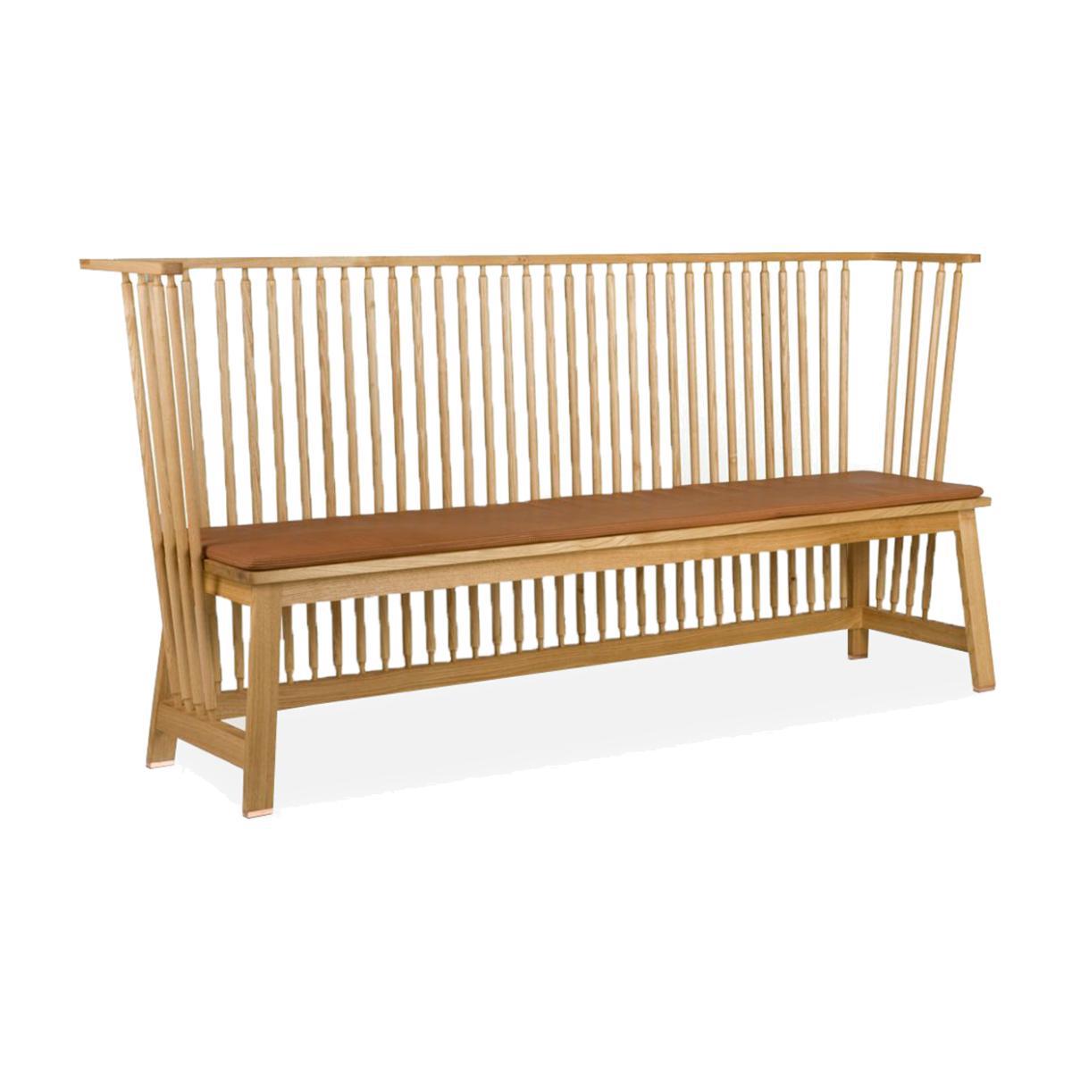 Designed by Ilse Crawford for Studioilse, the Low Settle bench is a recognisably traditional form with a contemporary edge, crafted from Danish-oiled white oak and 'naked' leather as a familiar yet carefully detailed piece. With a base crafted from structurally strong Danish-oiled white oak, the Low Settle bench is generously sized and an ideal length for using either alongside a dining table or as a relaxed seating option, with a premium natural brown leather seat pad and copper feet. The pad is fixed to the frame by purpose-made holes in the seat. Studioilse is renowned for its human approach to design. The Low Settle bench in beautifully finished white oak and leather was created as part of the brand's 'Seating for Eating' series, designed with the intention of bringing people together, and accented with a lower-level backrest for a more relaxed aesthetic.
