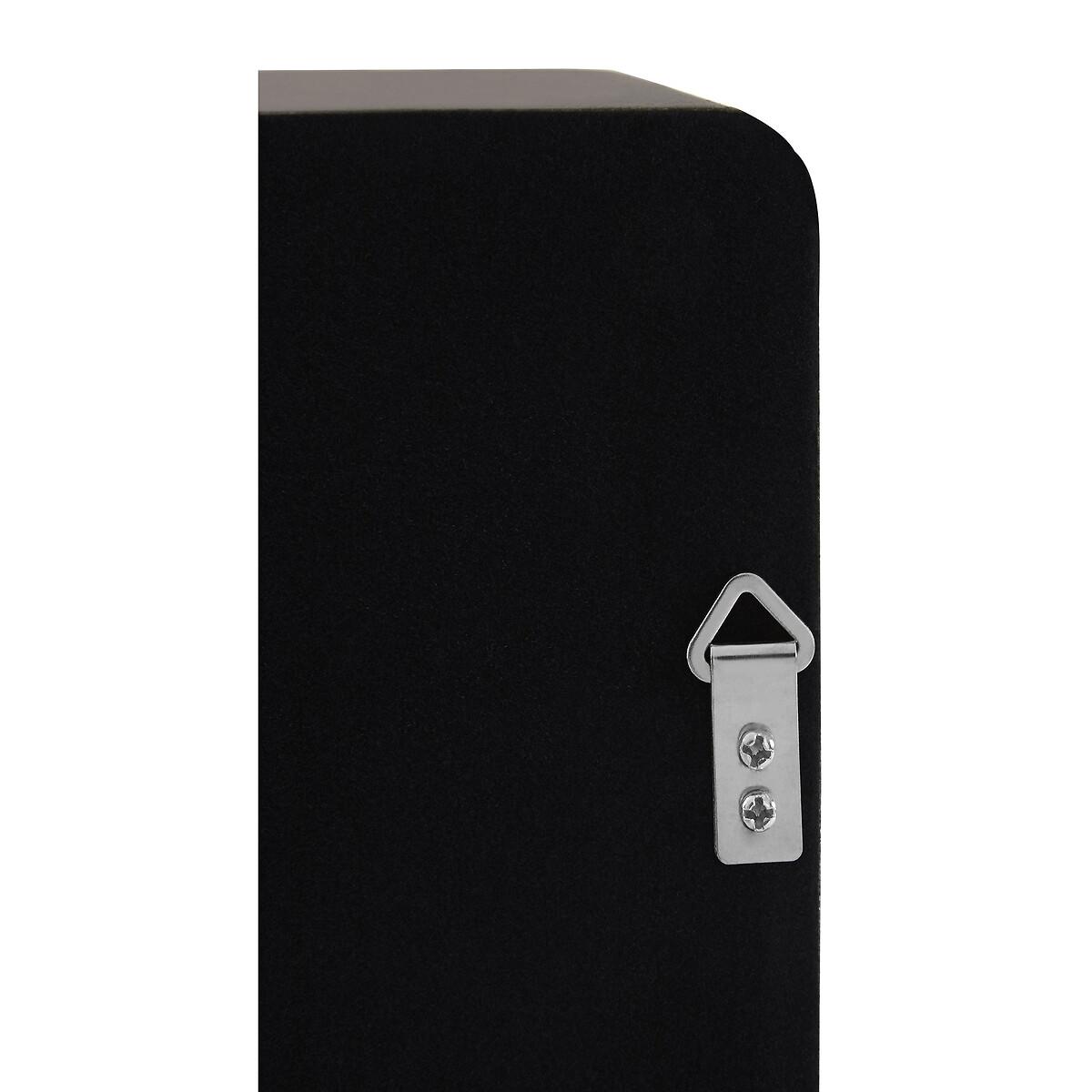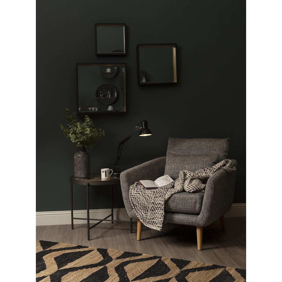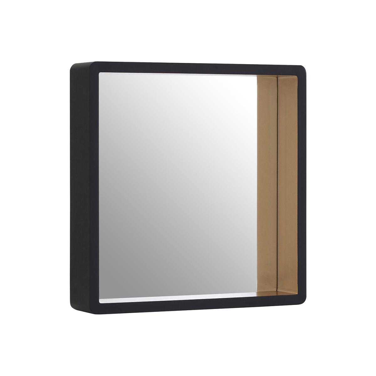 This product will be dispatched by one of our trusted suppliers. The mirror's thick frame has rounded corners that soften the square design. Its inner sides are coloured a metallic gold to create a warm counterpoint to the black outer. The reflective surface has a bevelled feature around its outer edges that refract light. Two metal hooks on the back make it easy to hand. Product Dimensions:W44 x H44 cm