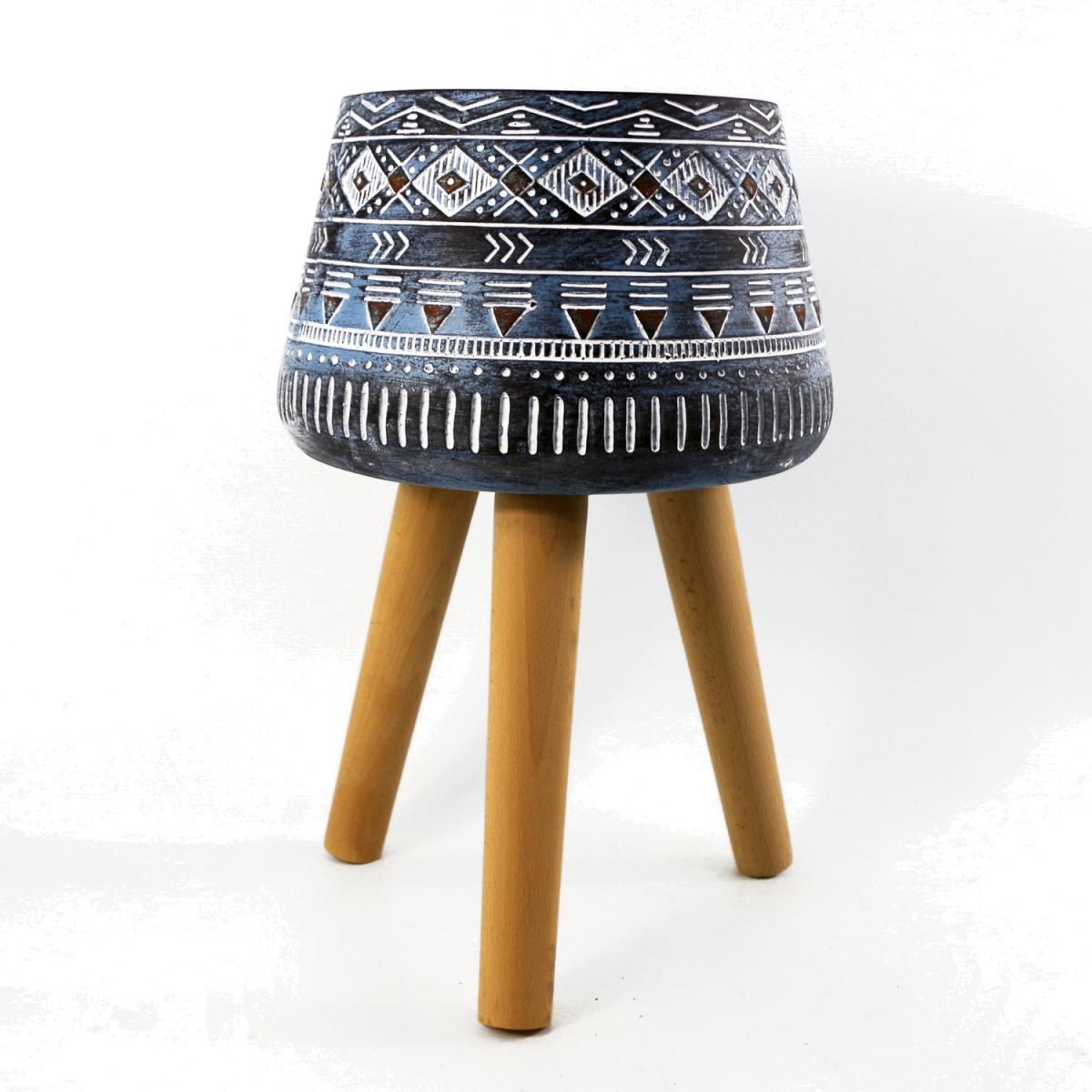 I love this pot for its bold Aztec pattern and vibrant blue hue, which instantly add character and colour to a space. Its sizeable 44cm diameter makes it perfect for statement plants like large ferns or palms, giving them a stylish platform. It works well in modern and boho interiors, especially when paired with natural materials or neutral backgrounds, where its intricate design can truly stand out. Practical styling tips include placing it on a simple wooden stand or directly on the floor for a casual look, or pairing it with complementary textured accessories to enhance its visual impact. Despite its striking appearance, it’s versatile enough to anchor a variety of plant styles, making it a great focal point in living rooms, patios, or conservatories.