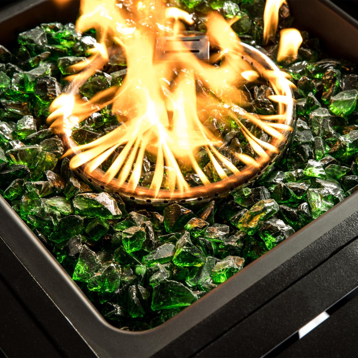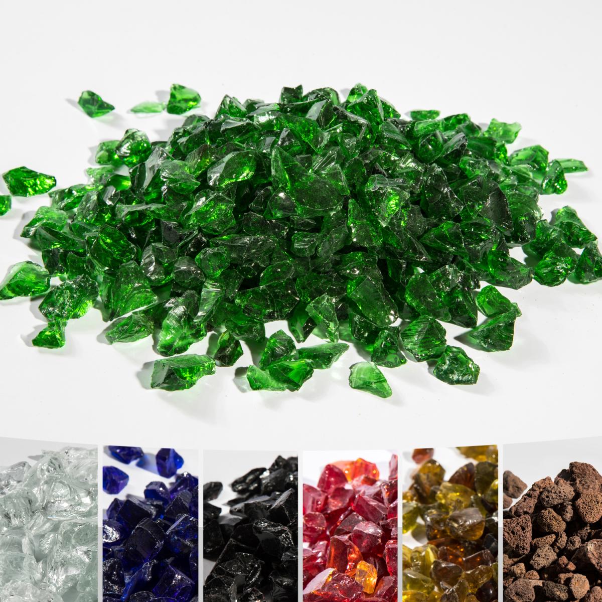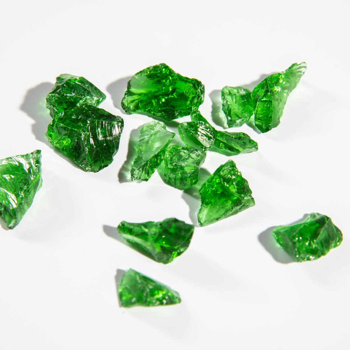 With the Teamson Home Green Lava Rocks add a touch of glamour to your gas fire pit by adding our Eco friendly and safe Lava Rocks. Made from tempered clear glass and fire-resistant up to 600, these lava rocks will not melt, break or emit smoke. Designed to be used indoor or outdoor with Propane Gas Fire Pits, they are a great replacement for glass logs as these add ambience and create a beautiful shimmer during the day and appear multicoloured at night when the gas fire pit is in use. Perfect to give your firepit a touch of class. These Lava Rocks can also be used in aquariums and for landscaping. Can be easily cleaned with water and vinegar.
