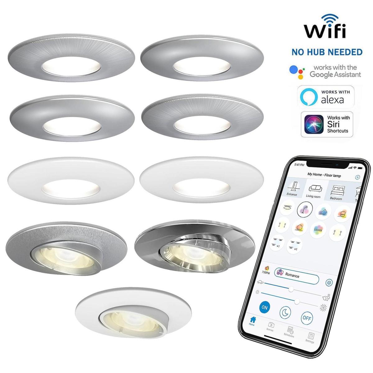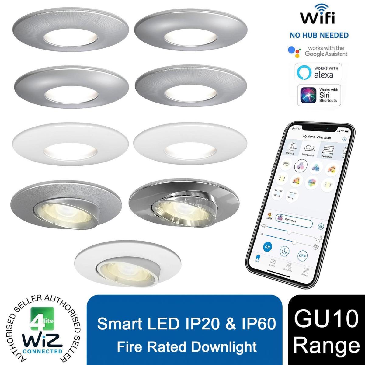 The 4lite Wi. Z Connected SMART LED Fire Rated Downlight lets you create the perfect mood in your home with 64 thousand shades of white. Dimmable via the Wi. Z app, added functionality includes setting schedules, providing added home security, night lights, saving energy and much more! Whether you're watching a film, having a party, working from home or even helping the kids get to sleep. Our smart bulbs put the power in your hands. Simply install your 4lite smart bulbs, connect to wi-fi via the Wi. Z Connected app and start making light work for you. Control your lights wirelessly and remotely with the Wi. Z app or pair it with your favourite voice control device including Google Assistant, Amazon Alexa and Apple Siri. 4lite Wi. Z Connected products work with Samsung Smart. Things and IFFFT too, just to name a few!