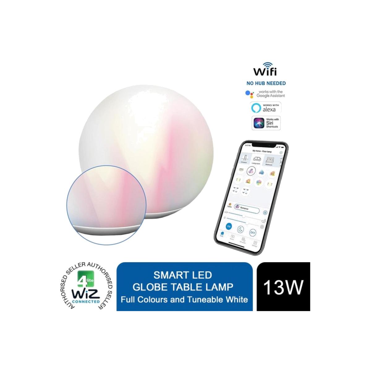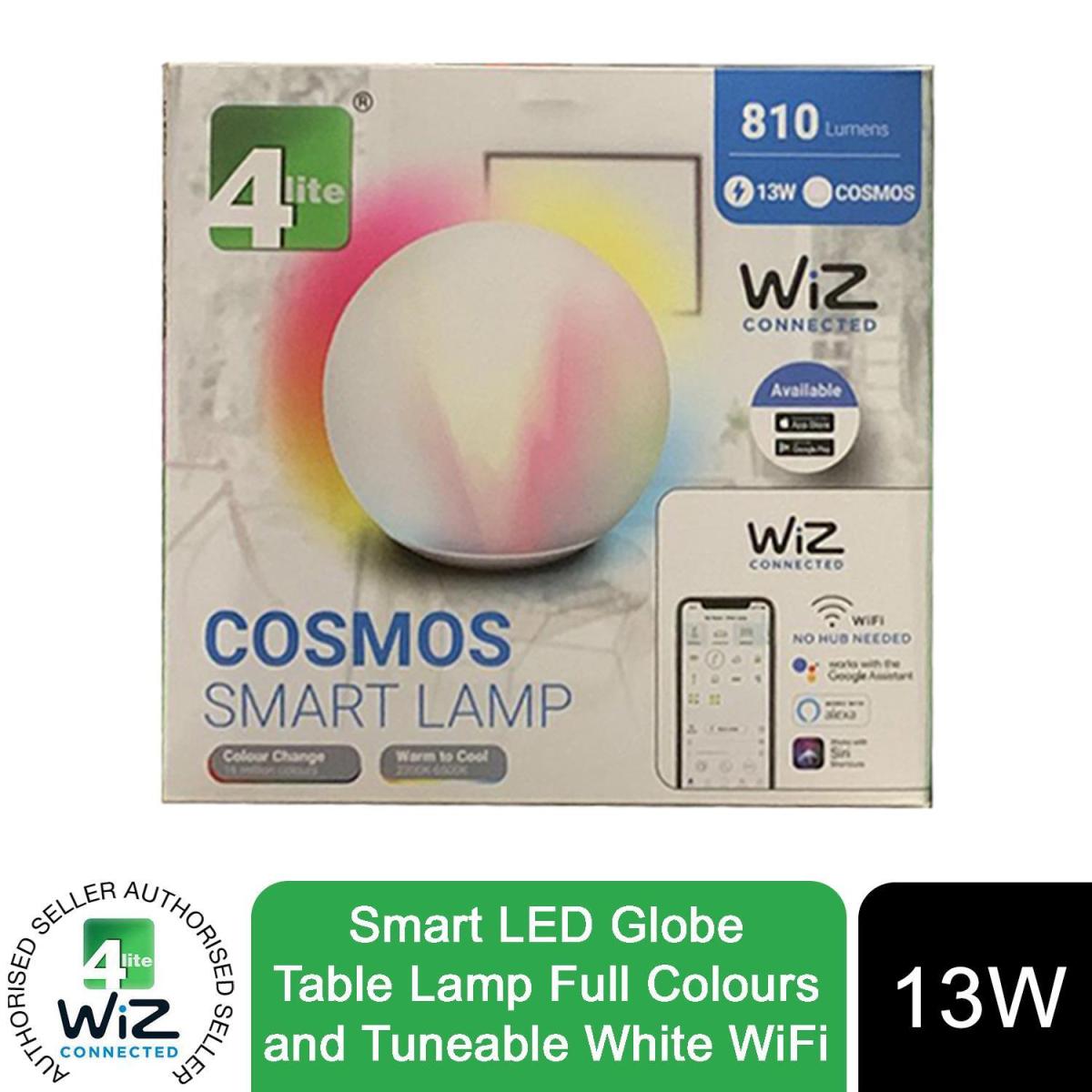 The 4lite Wi. Z Connected LED Dimmable Multicolour Wi Fi Cosmos Smart Lamp provides 13W 810 Lumens of colour and tunable white light in a beautiful, dimmable table lamp. It can be controlled via the Wi. Z App and Voice Controlled Smart Devices - Google, Alexa, Siri, and Samsung Smart Things.