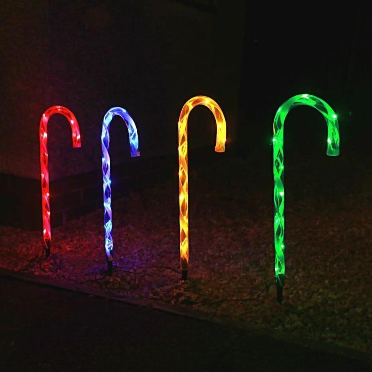 These Christmas themed stake lights are the ideal way to bring some fun and colour to your garden this winter! Available in set of 4 multicoloured lights in fun and colourful Candy Cane designs, these lights are jam-packed with colour. This set contains 1 stake light of each colour: blue, red, yellow & green. These lights require minimal installation, simply insert into soft ground and plug in. Watch them illuminate your outdoor space with a warm colourful glow as darkness falls! Place along a drive, in a border, at the edge of a patio, or aside a front door to welcome your guests. These lights can be used indoor or outdoors, but make most impact when lit on a dark night! Made from strong and durable acrylic which is weatherproof, waterproof and hard wearing. These lights will stand the test of time and can be used year on year.