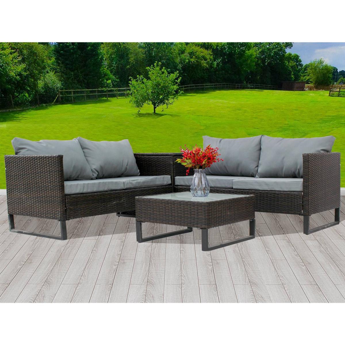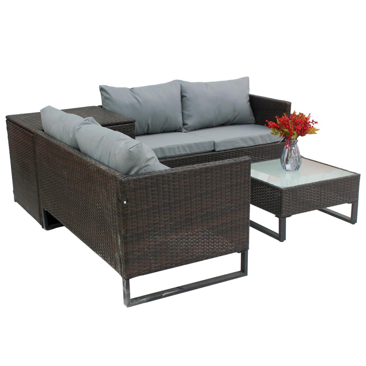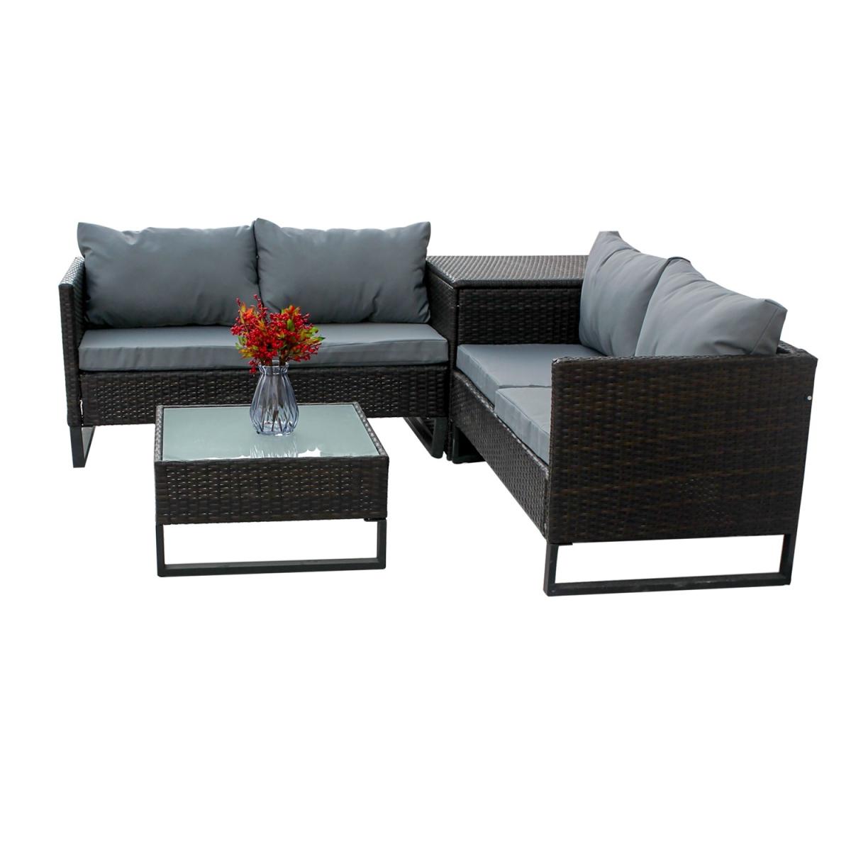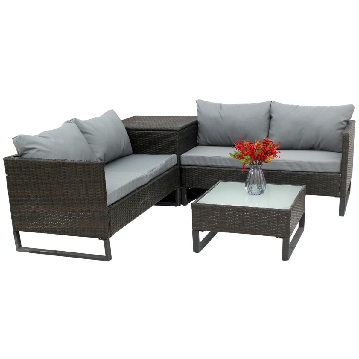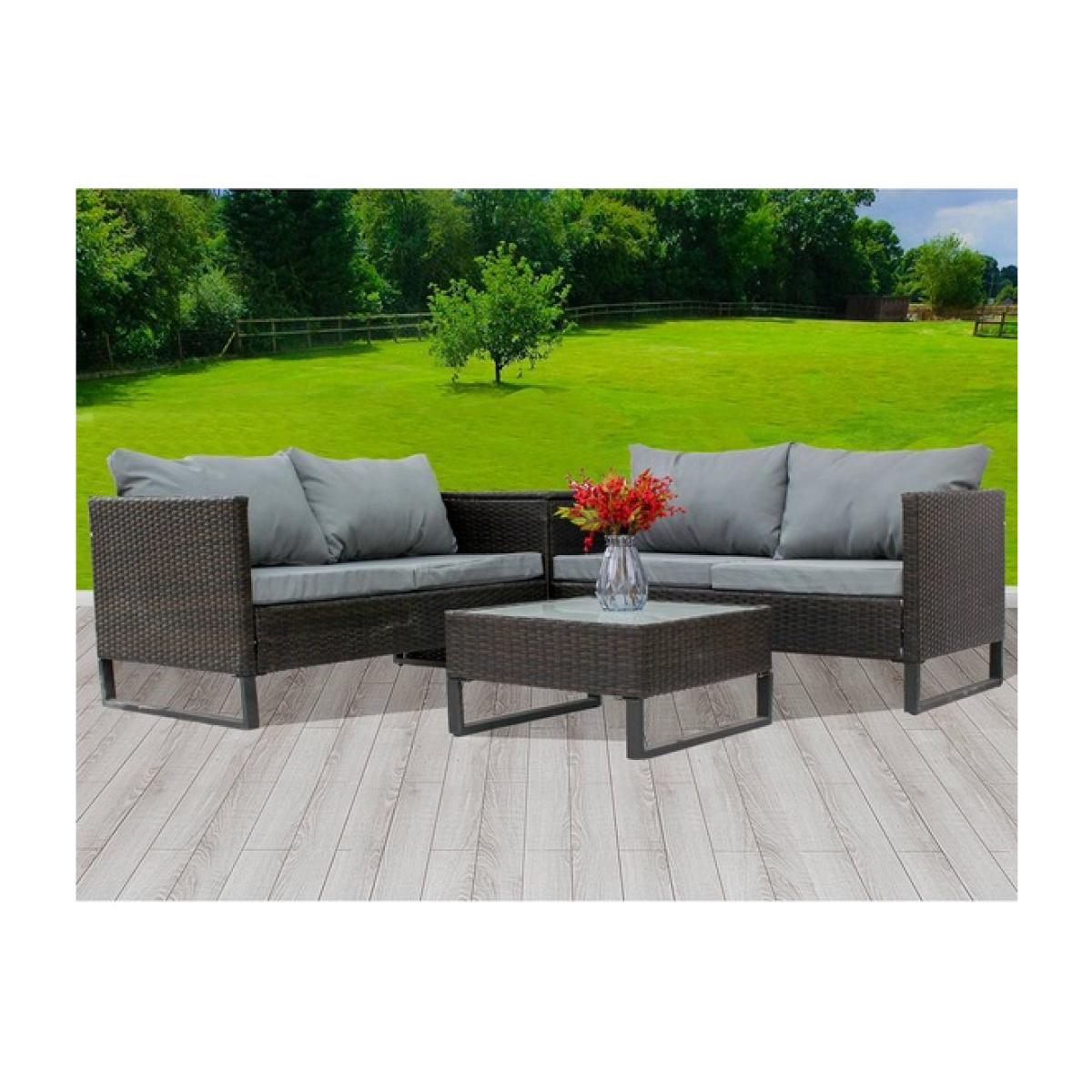 4 pieces Rattan Sofa Set complete with Storage Box and Coffee Table, fashion to be used at patio, garden, conservatory to enjoy leisure times. Arrives Flat Packed. The instruction manual is provided with the purchase along with all the relevant screws and fittings.