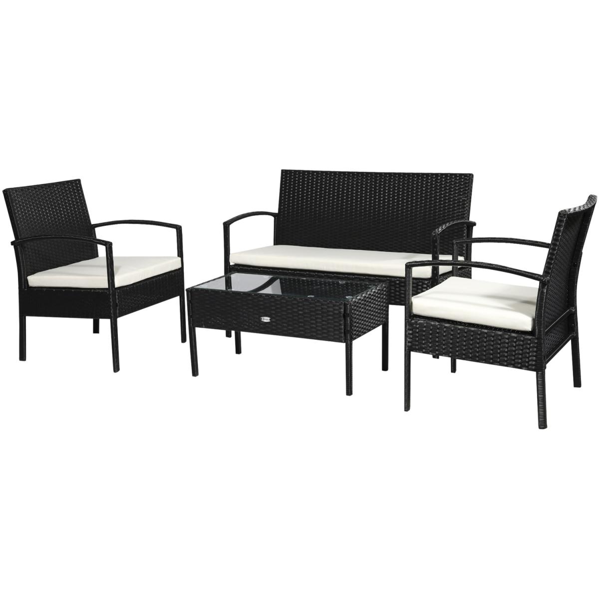 4PC Rattan Sofa Bistro Set - Black