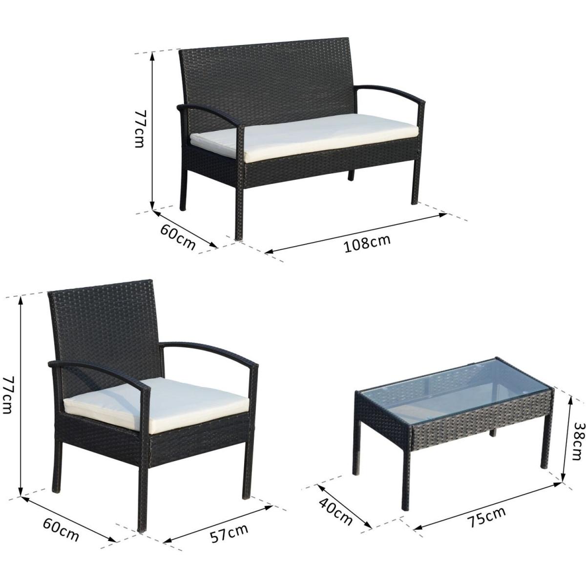 We do not ship to BT Guernsey Jersey the Isle of Man Northern Ireland or call for shipping charge. This 4piece rattan set is a perfect solution for any garden, patio, or conservatory. It is made of high-quality steel and covered with PE rattan, it comes complete with cushions that are covered with flame retardant polyester. It has been designed with style and elegance so it can look at home in any decor. The table is also topped with a 5mm tempered glass for you to place drinks or magazines. This is a great choice with a minimalistic look.