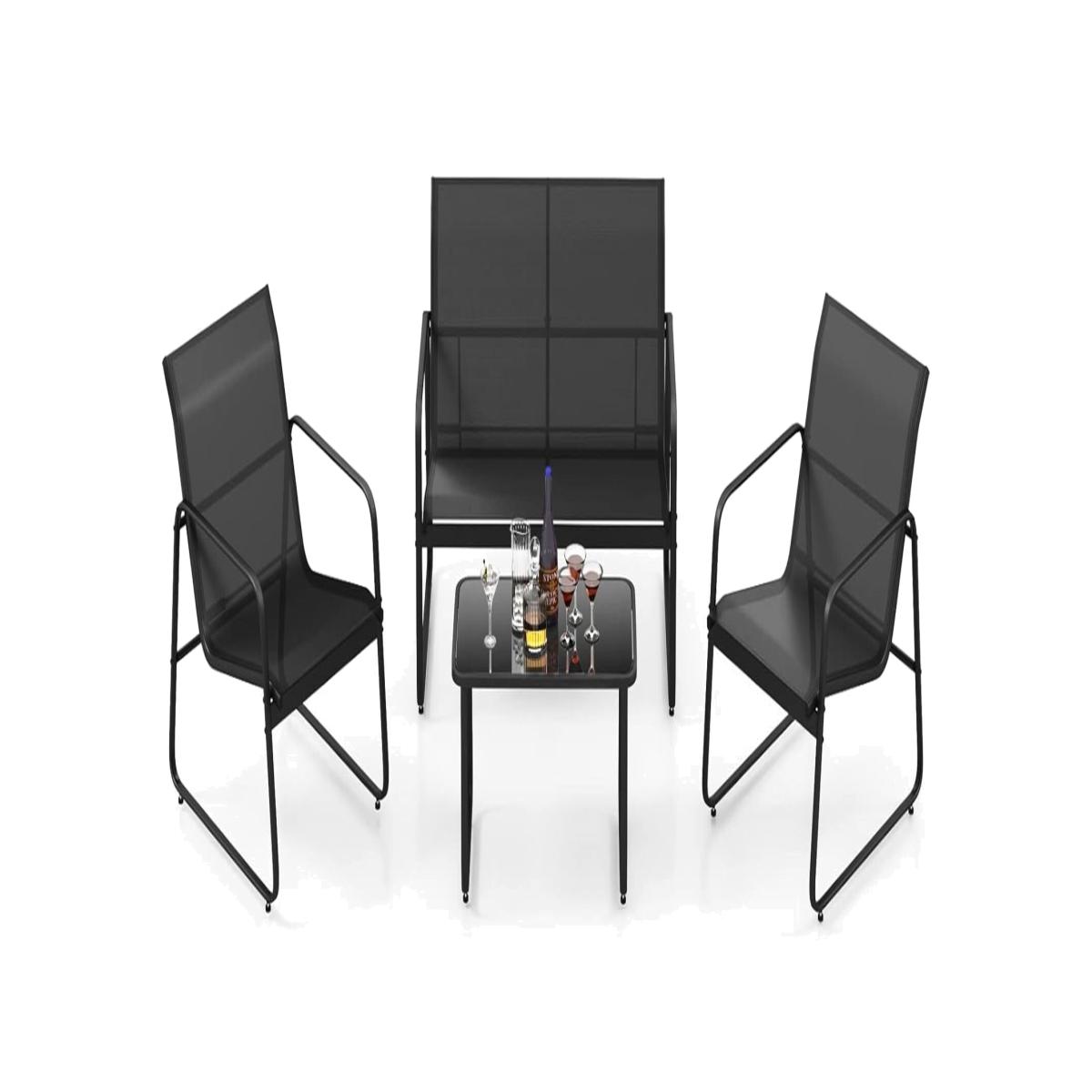 Enhance your outdoor space with this 4-piece garden furniture set, including a loveseat, 2 chairs, and a glass coffee table. Perfect for small gatherings, this set provides comfort with ergonomic backrests and cosy armrests. The heavy-duty metal frame ensures durability, while the quick-drying, breathable fabric makes it ideal for outdoor use. The tempered glass coffee table is easy to maintain and provides ample space for drinks and snacks. Ideal for patios, gardens, or poolside areas. 4PC S Garden Furniture Set with Loveseat and Chairs - Black