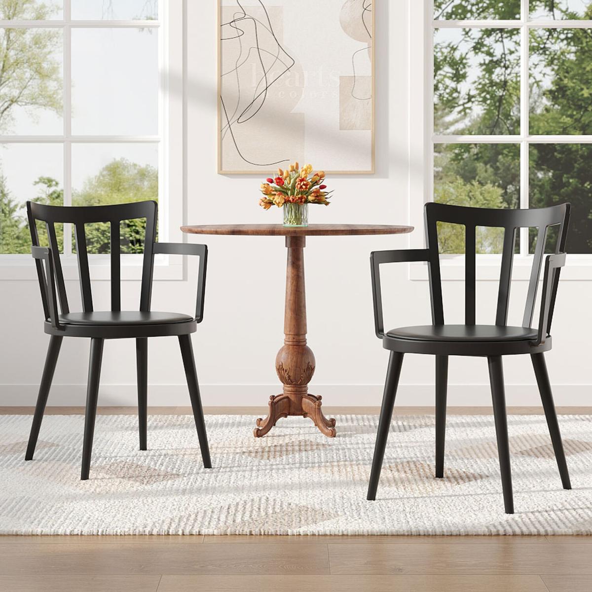 Upgrade your dining area with this set of four modern dining chairs, designed to blend elegance with functionality. Featuring durable materials, ergonomic armrests, and a sleek design, they bring style and comfort to any space, whether indoors or outdoors.