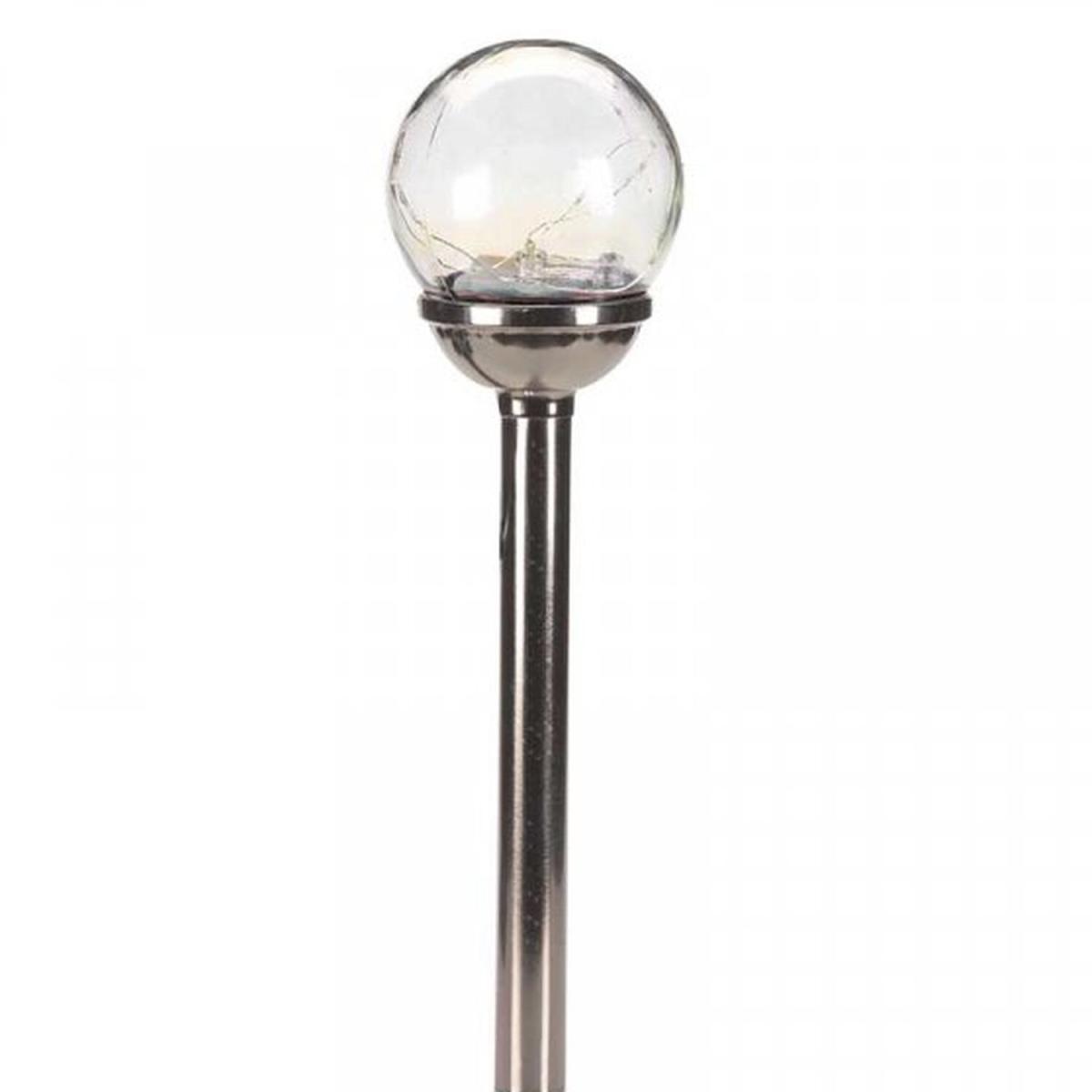 Stunning iridescent glass 'Opal' orb with premium black nickel effect stake. Each orb contains 10 twinkling firefly LEDs to create a magical source of light for any space. They are also held by a premium black Nickel effect stake for easy placement. Due to their solar power source, these orbs charge in direct sunlight and automatically illuminate your garden at night. These stunning, iridescent opal orb stake lights by Smart Garden are a unique and eye-catching addition to any garden!